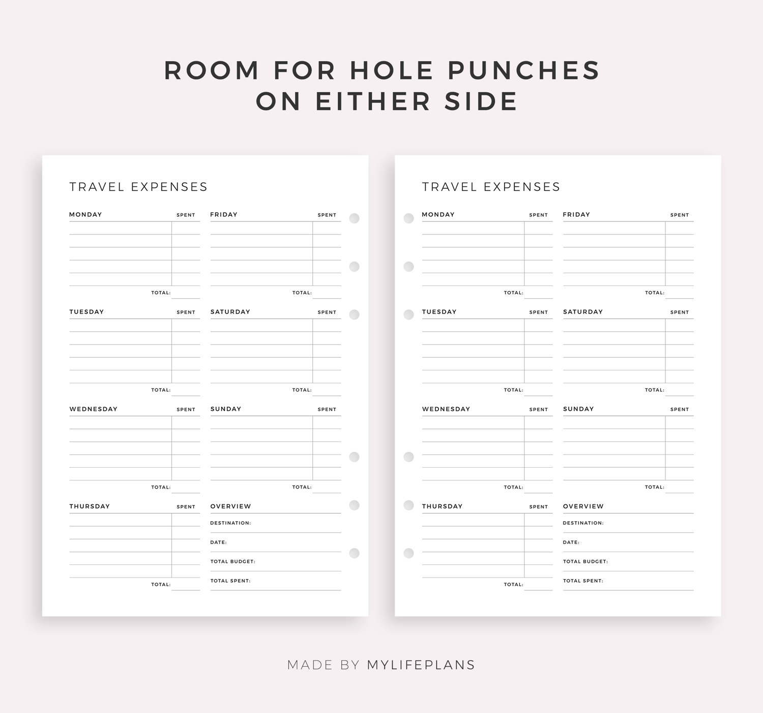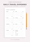 Daily Travel Expenses Tracker - Vacation Spending, Work Travel Spending, Holiday Finances Planner, A4/Letter Size