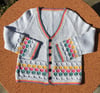 Yarn: Rowan Summerlite 4-ply (100% cotton, 175m/50g), MC: Duck Egg 419, 3 (3, 4, 4, 5) balls, CC1: Aqua 433, 1 ball, CC2: Pinched Pink 426, 1 ball, CC3: Touch of Gold 439, 1 ball