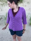 I designed this sweater especially for my mom. She wanted a lightweight sweater to wear in the evening down in Florida after the sun went down, and after pouring over dozens of lace patterns together, this sweater was born.