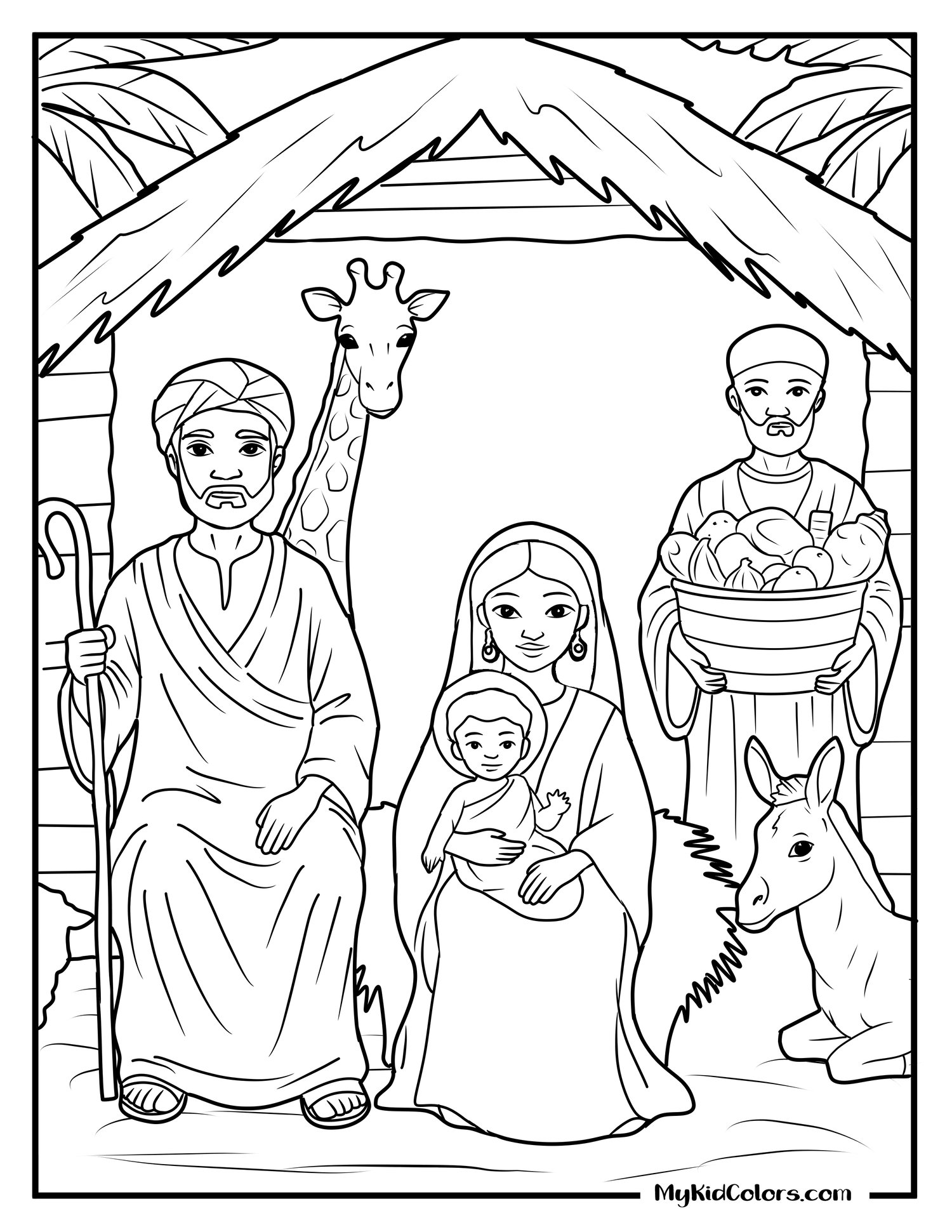 You’ll find scenes centered on the manger, Mary and Joseph, the birth of Jesus, and simple versions of the Nativity that work well for preschoolers, early learners, and Sunday school. These sheets also highlight brown-skinned characters, natural hair, and friendly, welcoming designs that help kids feel seen.