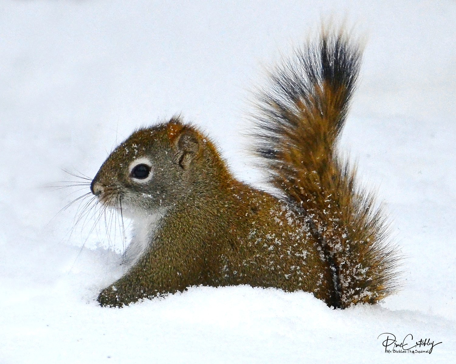 This is Ivy - she was busy in the snow burying nuts - hope she finds them again later! She was pretty pleased with the location she had selected! Ivy was born in 2023 later in the year - she is a daughter of Mr. Bickles and Belinda. She's very special!