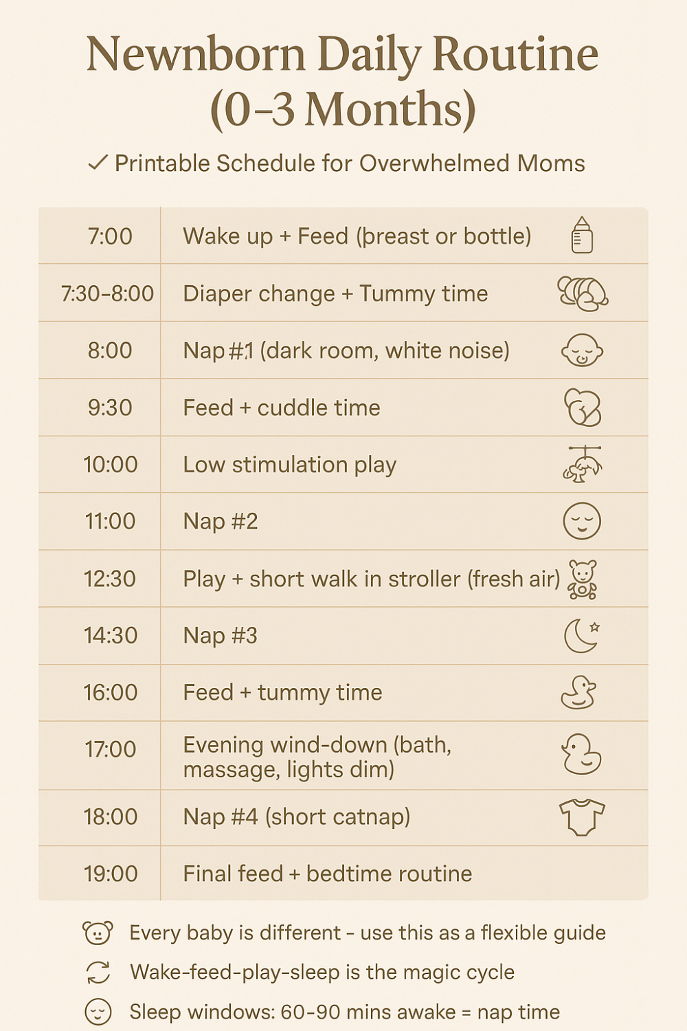 Feeling overwhelmed, not sure what to do with your newborn 0 to 3 months old? You're not alone - hundreds of American moms rely on this FREE printable 0-3 month newborn daily routine to find peace of mind amidst sleepless nights and diaper chaos.