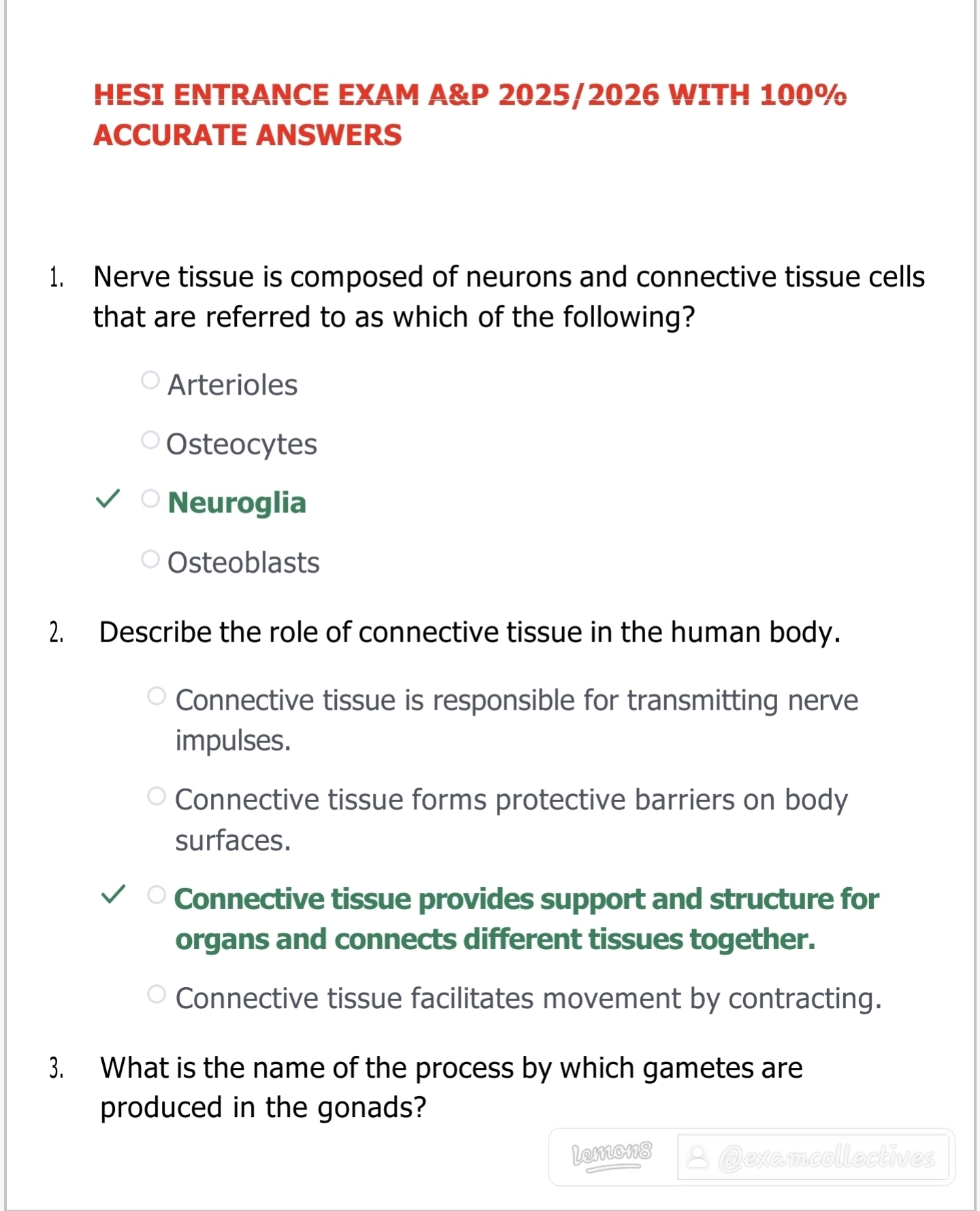 HESI ENTRANCE EXAM A&P 2025/2026 WITH 100% ACCURATE ANSWERS