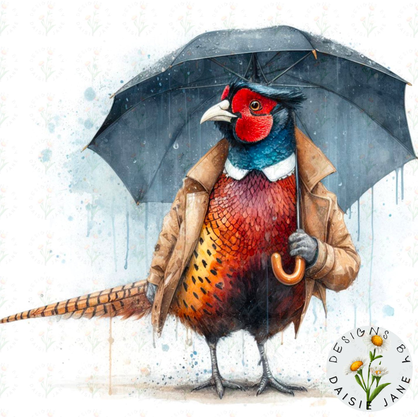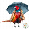 Pheasant Wearing Raincoat. 2 files, 1 with and 1 without background