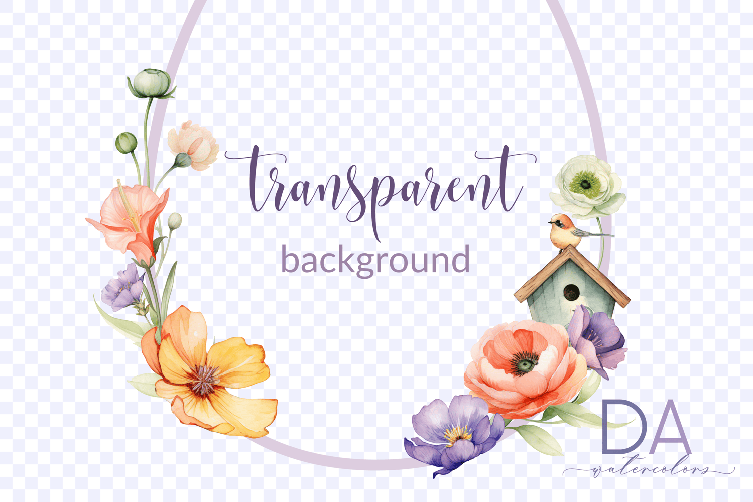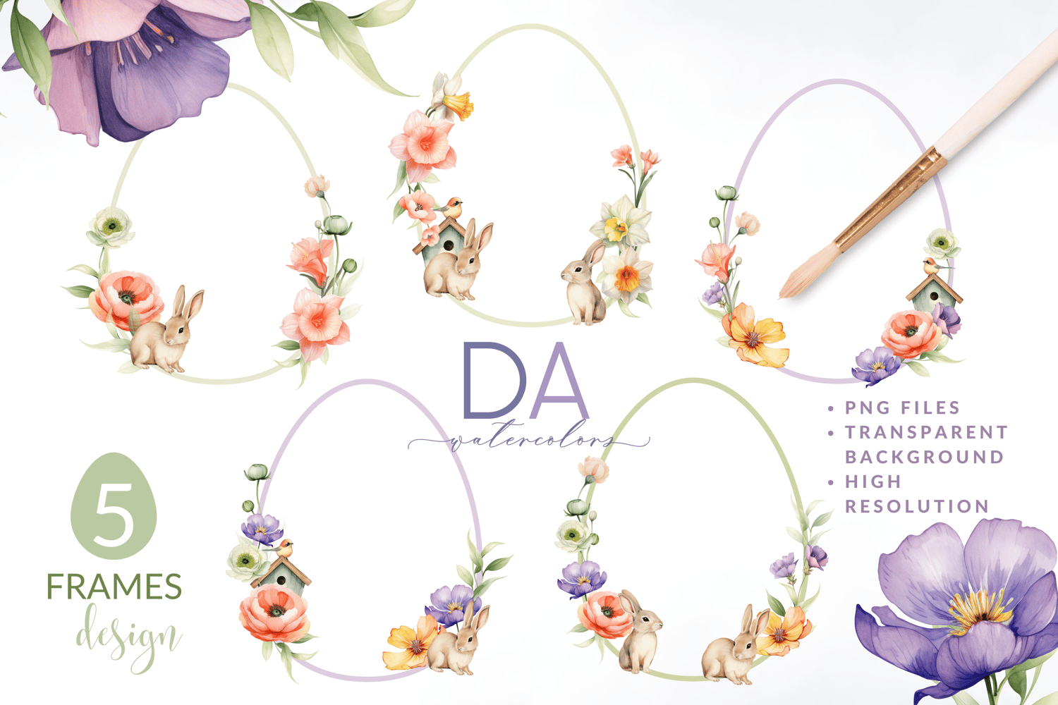 – 5 PNG Files of Watercolor Floral Easter Frame