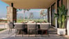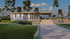 This modern house plan is an architectural masterpiece designed using four 40-foot shipping containers. The containers are elevated off the ground on a raft foundation, arranged side by side, and stitched together to create a modern container floor plan with 3 bedrooms, 2 bathrooms, and an open-plan living area. The living room opens onto a large outdoor deck with alfresco dining overlooking the pool and a spacious pool deck area, perfect for entertaining.