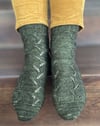 The Jolan Socks were designed in collaboration with the beautiful and talented indie dyer, Judy, the person behind GigglingGecko yarns. The socks were inspired by nature and its beautiful green colour.
