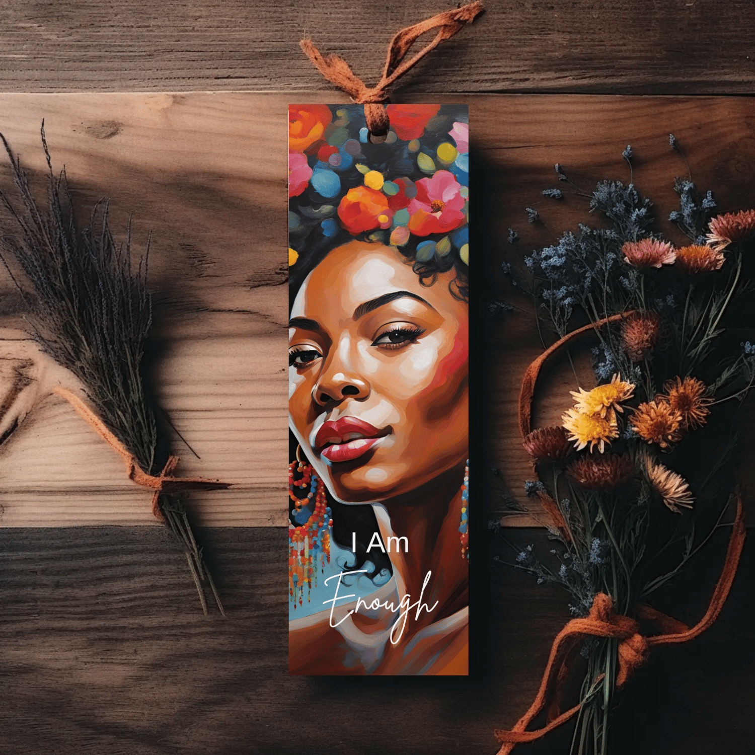 This is the " I Am Enough" bookmark I made. The bookmark is laminated with hard card stock to protect the design. There is a choice to have a golden tassel or without a tassel.