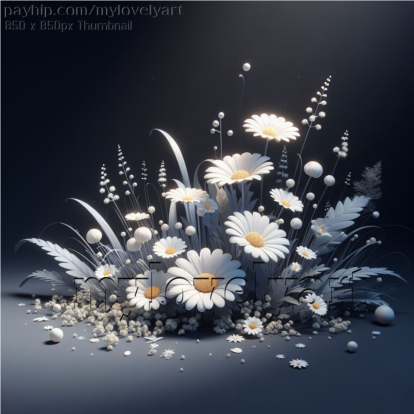 Enter a world of contrasts with our captivating digital art piece, "Bright Daisies Against Darkness". Vivid white daisies burst from a rich ebony void, demanding attention and warming the soul. This digital art download invites light into your space, lifting the gloom. Available art download, obtain "Bright Daisies Against Darkness" now. 🌻🌃🖤❀ #BrightDaisiesAgainstDarkness #InvitationToLight #UpliftTheGloom #ArtAtHand #GetItNow