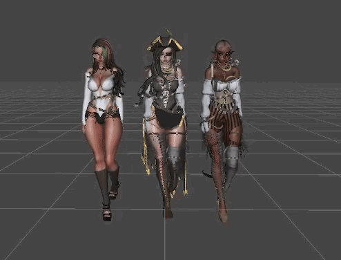 Shorts, Undies/Tail, TankTop, SheerPants, BodySuit, LongSleeve/Hat/Socks/LacedHeels/Corset/Skirt, Corset/TubTop/Sleeves