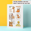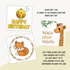 Make child's birthday gift more cute and memorable with these lovely printable favor tags with cute animals saying Happy Birthday in different ways. These note cards are easy to use - print the PDF file, cut out the tags with scissors or a craft knife and attach them to a gift or birthday bag by simply adhere them to the desired surface with double-sided tape.