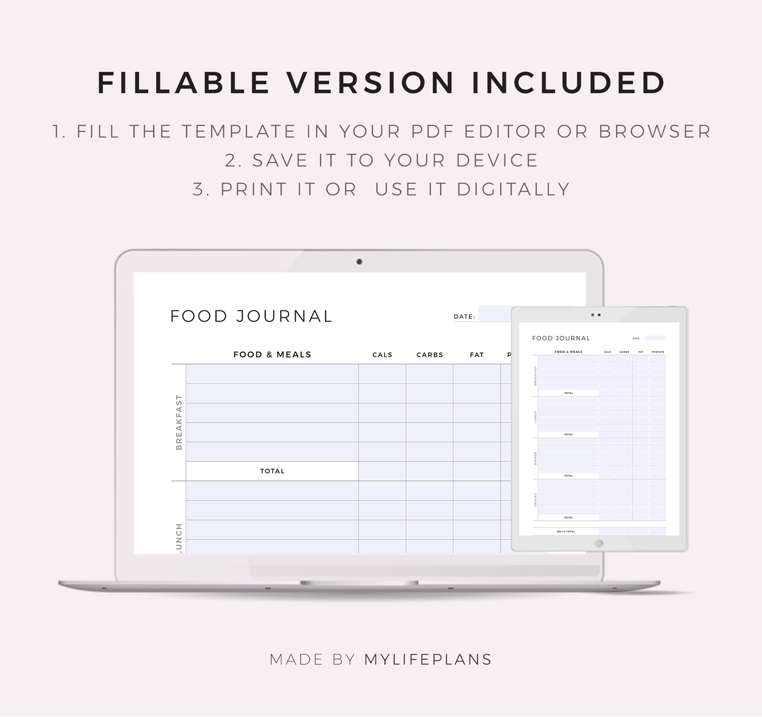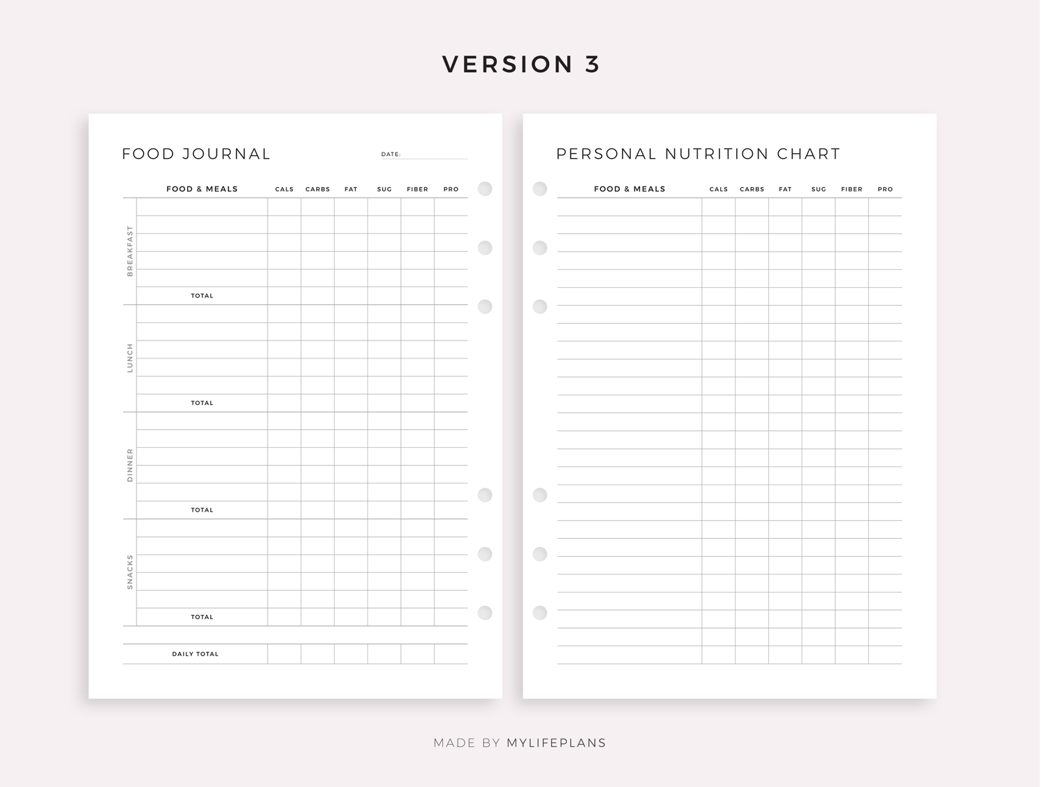 Daily Food Journal & Nutrition Chart, Printable & Fillable Template, A4/Letter Size