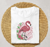 Featuring an elegant flamingo surrounded by floral swirls and leaves, this design adds a perfect touch of summer beauty to tote bags, t-shirts, cushions, beach towels, or tropical décor projects.