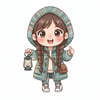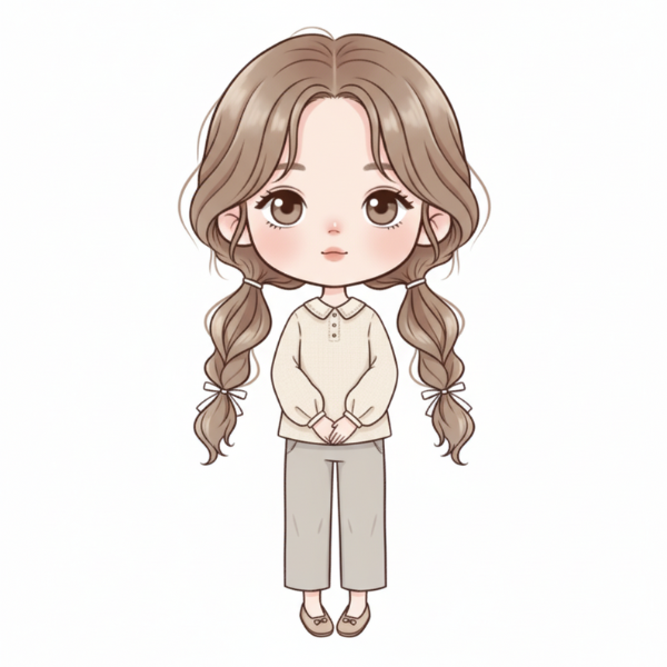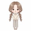 This collection includes 40 unique chibi-style girl characters, featuring oversized heads, tiny bodies, soft facial expressions, and cozy quirky outfits in a gentle pastel color palette.