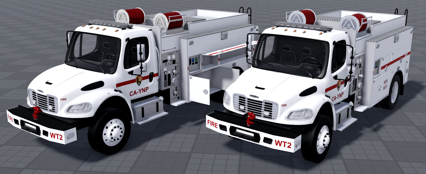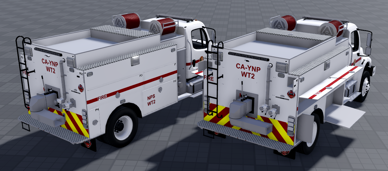 Based off of the National Park Service Water Tender 395 but outfitted for Yosemite. The livery and ELS is 99% accurate to real life. This includes 3 stages of ELS and 3 stages of directionals. The vehicle also comes with A-chassis so it isn't static. The vehicle doesn't come with any sirens so you will have to add your own. Each vehicle comes with two variants, one has opening compartments while the other doesn't.