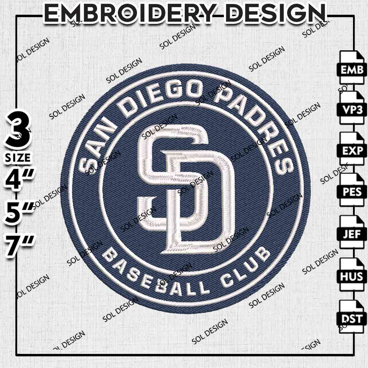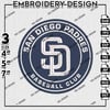 San Diego Padres Round Logo Embroidery Designs, MLB San Diego Padres Logo Embroidery Files, Baseball League Logo Embroidery, MLB Padres Team Machine Embroidery Design, 3 sizes, Digital Download