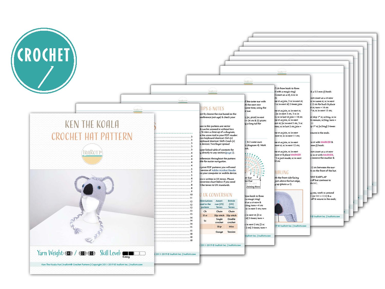 Totally koala-fied to be a koala-ty friend with this adorable hat. Ken the koala hat can be made with furry or non-furry ears. This pattern is written row-by-row using US crochet terms. It also includes crochet diagrams, step-by-step photos, and a conversion chart to UK terms.
