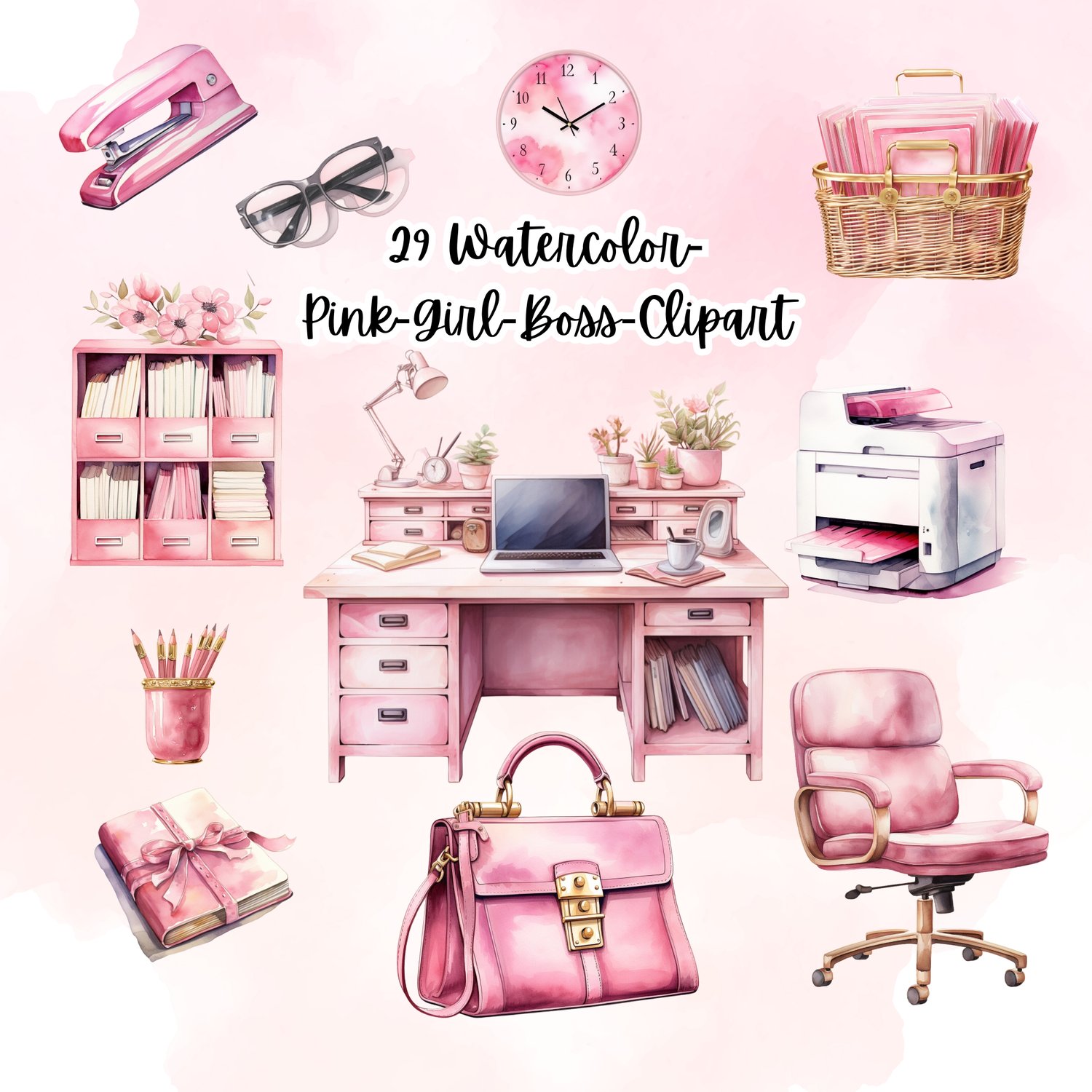 Watercolor Pink Girl Boss Clipart - Feminine Office Decor, Boss Lady Art, Digital Download, Boss Babe Clipart,High-Quality PNG Files, Planner