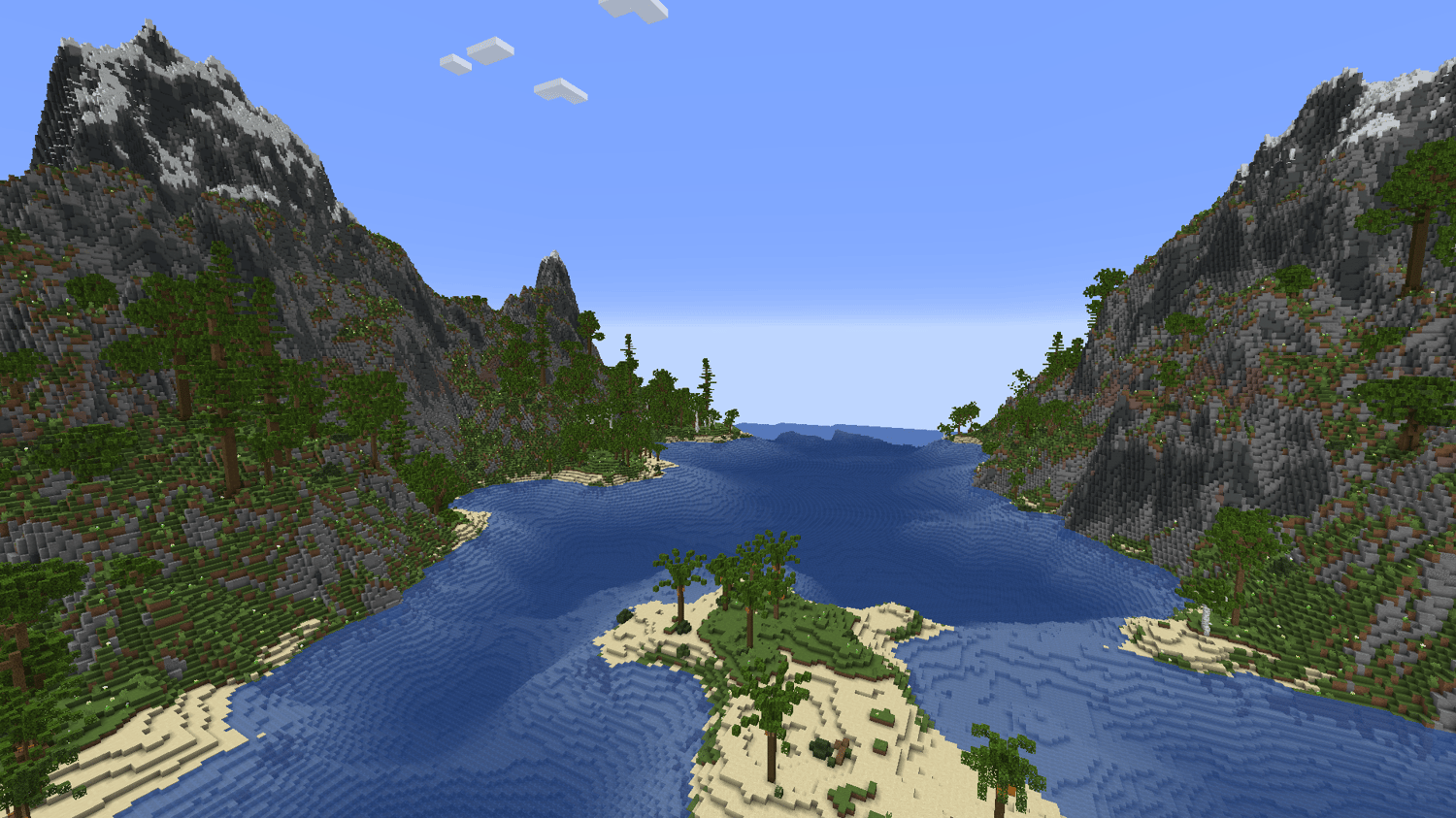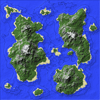 A couple of mountainous tropical islands along with some scattered small sandy islands. There are palm trees on the beaches and various tree types as you go deeper into the island jungle. This map works great for various server game modes, build projects, etc.