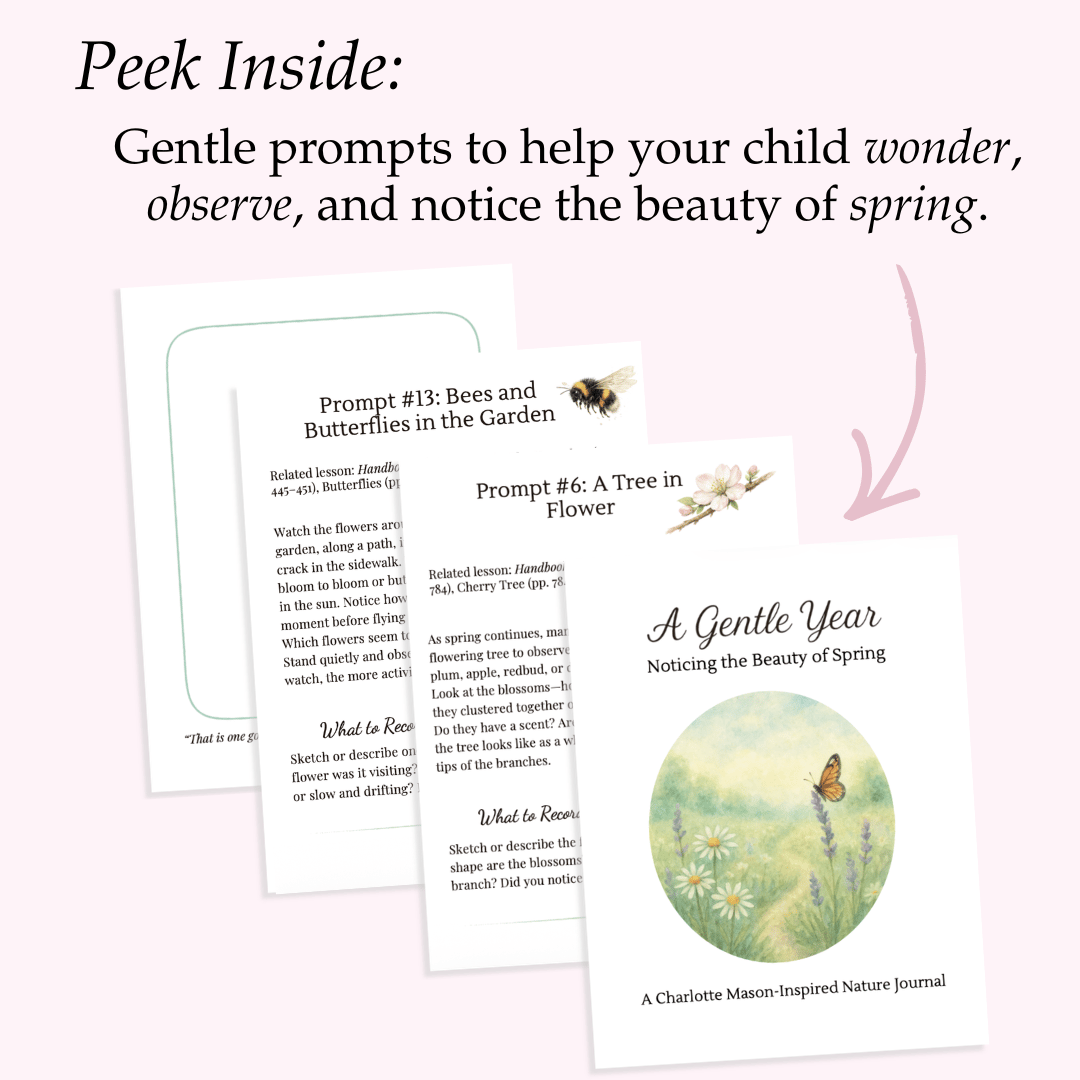 Designed especially for Charlotte Mason–inspired families, A Gentle Year: Spring offers 14 open-ended prompts that guide your child outdoors with curiosity and quiet attentiveness.