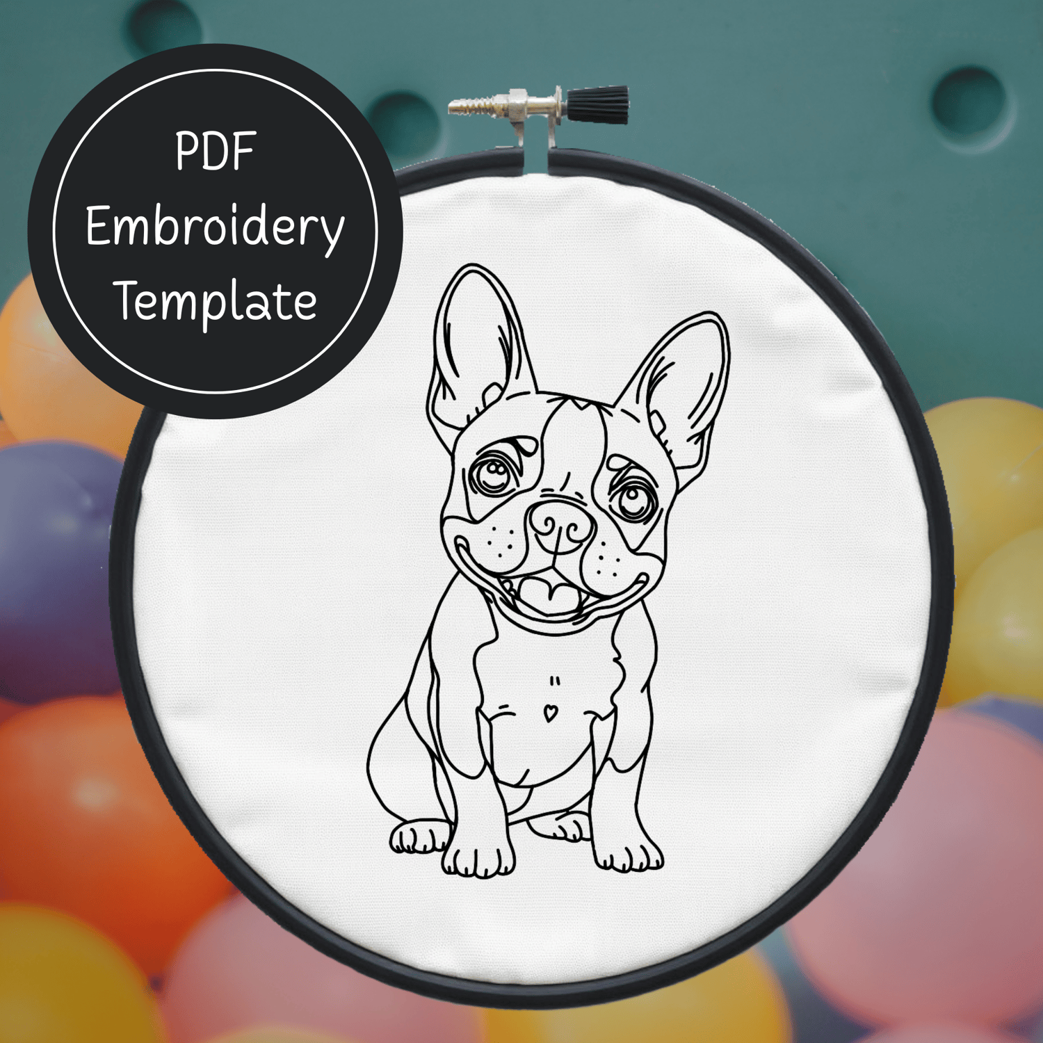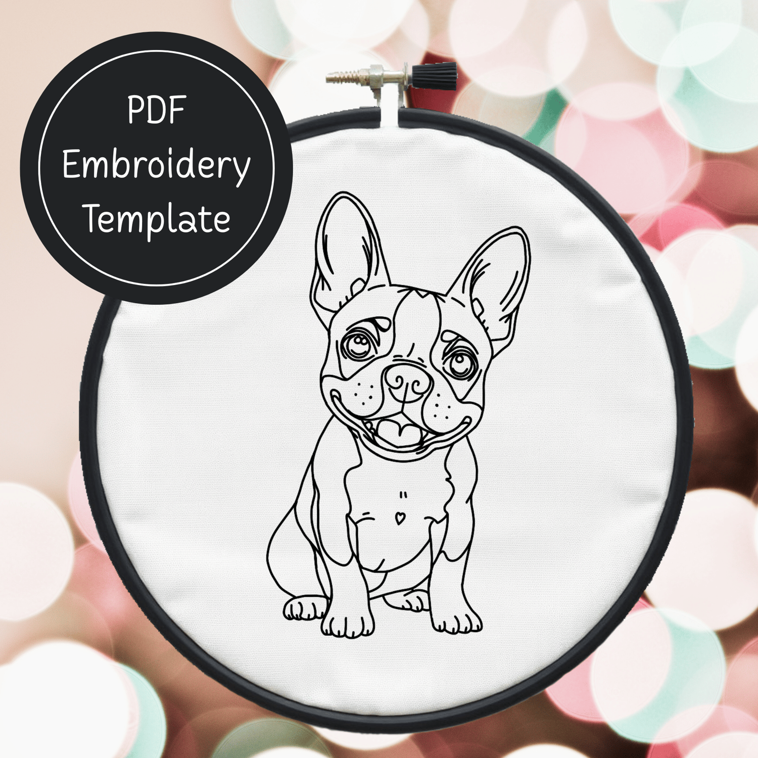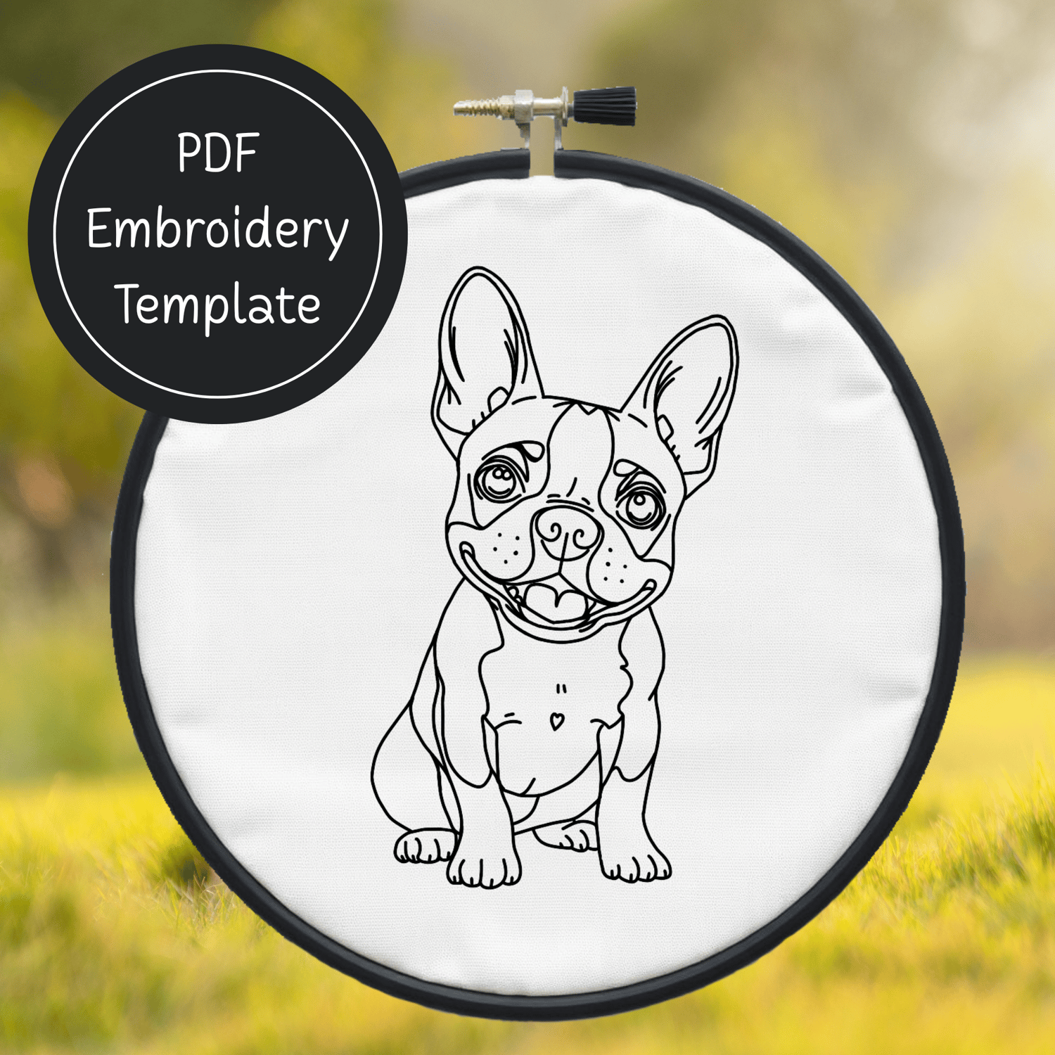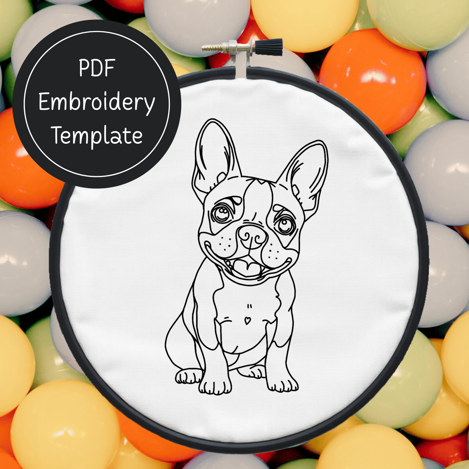 French Bulldog Boston Terrier Embroidery Template PDF - DIY Dog Design For Hand Stitching - Instant Download