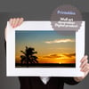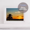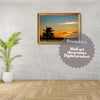 Tropical Sunset Scenery – Printable wall art decoration tropical landscape view. Calm lake sunrise view Tropical Paradise View