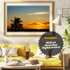 Experience the serene beauty of a tropical sunset from the comfort of your home. This captivating image showcases a single palm tree silhouette against a breathtaking backdrop of vibrant orange and yellow hues as the sun dips below the horizon. The tranquil waters and clear skies promise to bring a touch of tranquility to any space, making it an ideal addition for those looking to infuse their environment with nature’s splendor..