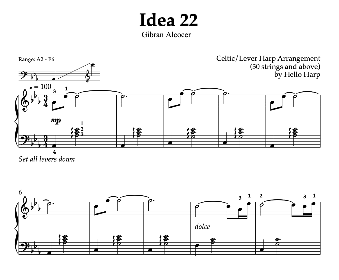 Idea 22 - Gibran Alcocer (Celtic/Lever Harp Sheet Music)
