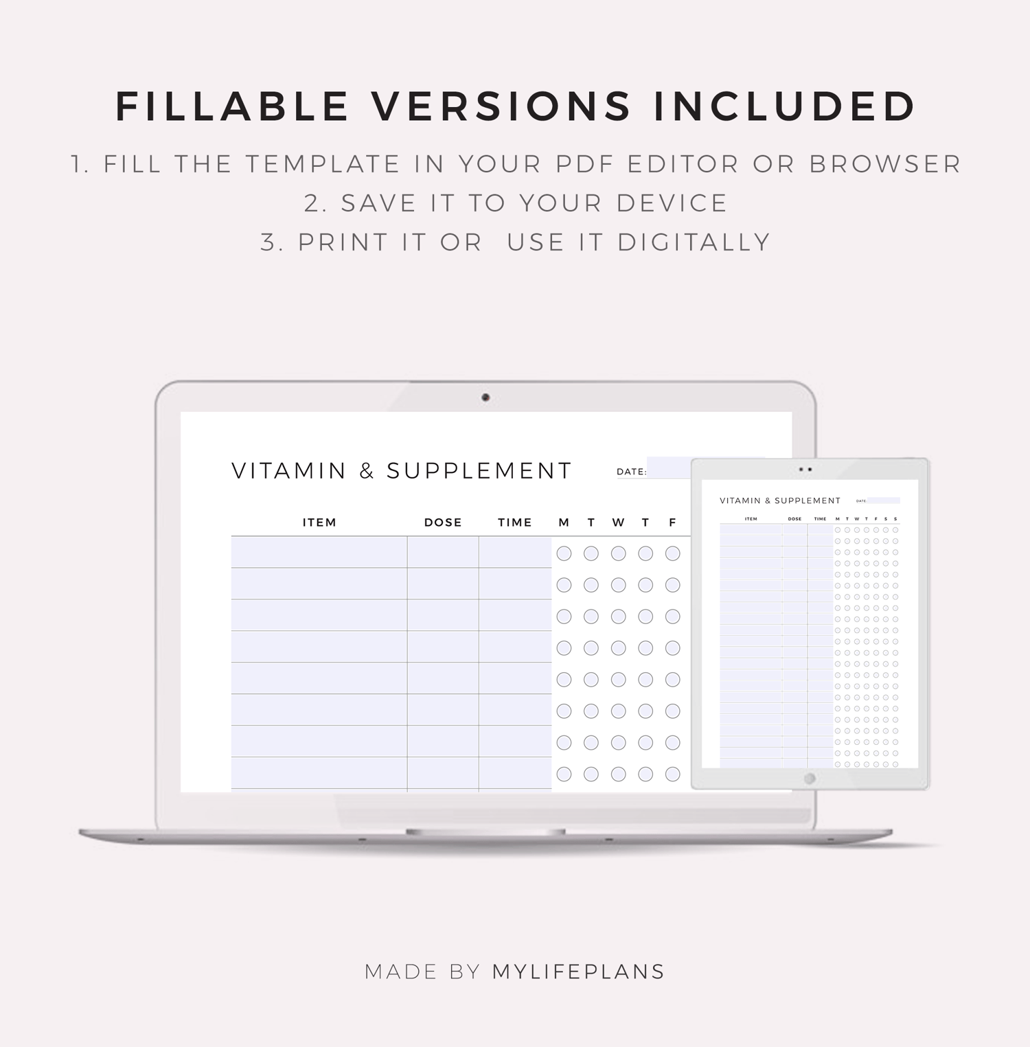 This is a printable weekly vitamin tracker — just download, print, and start using it right away.