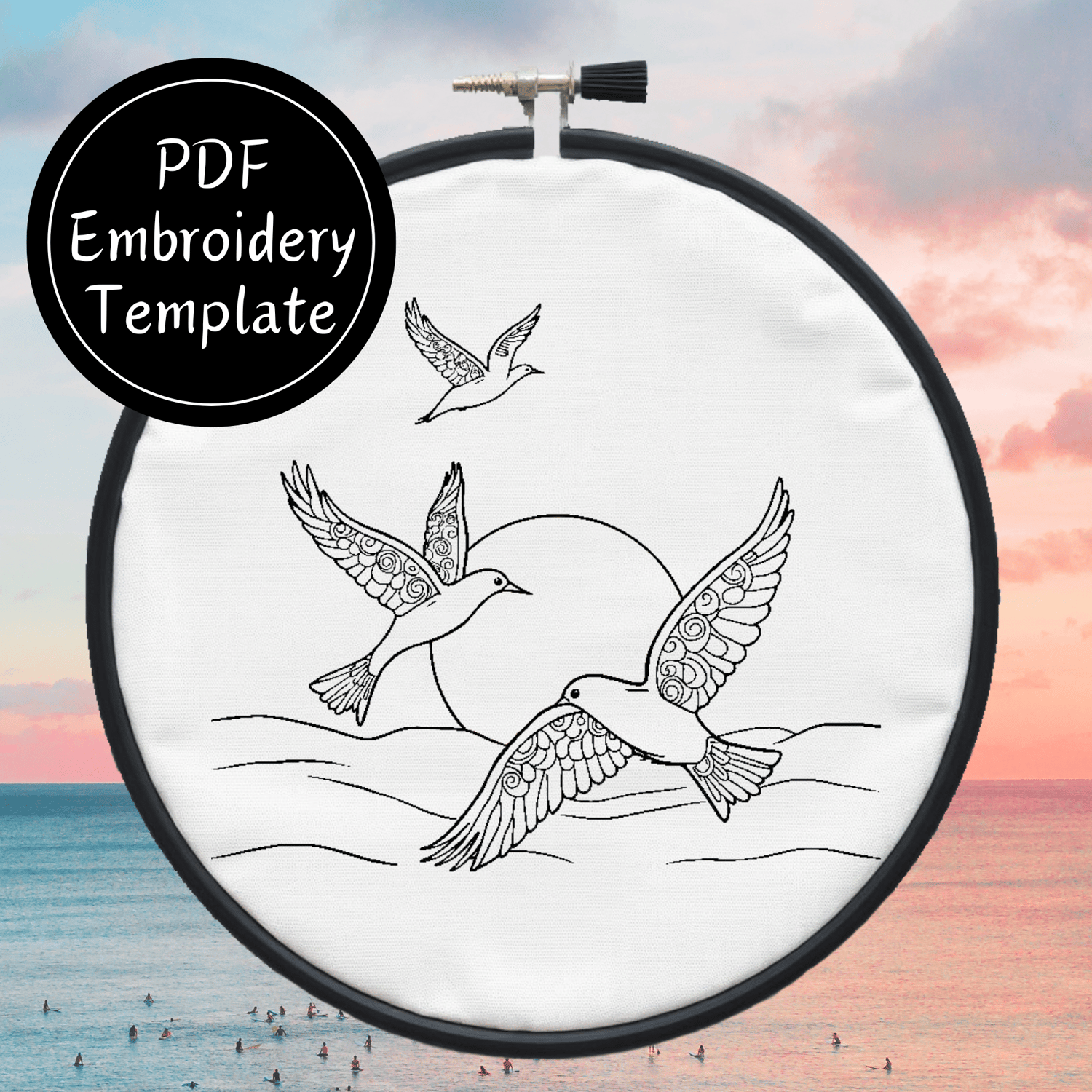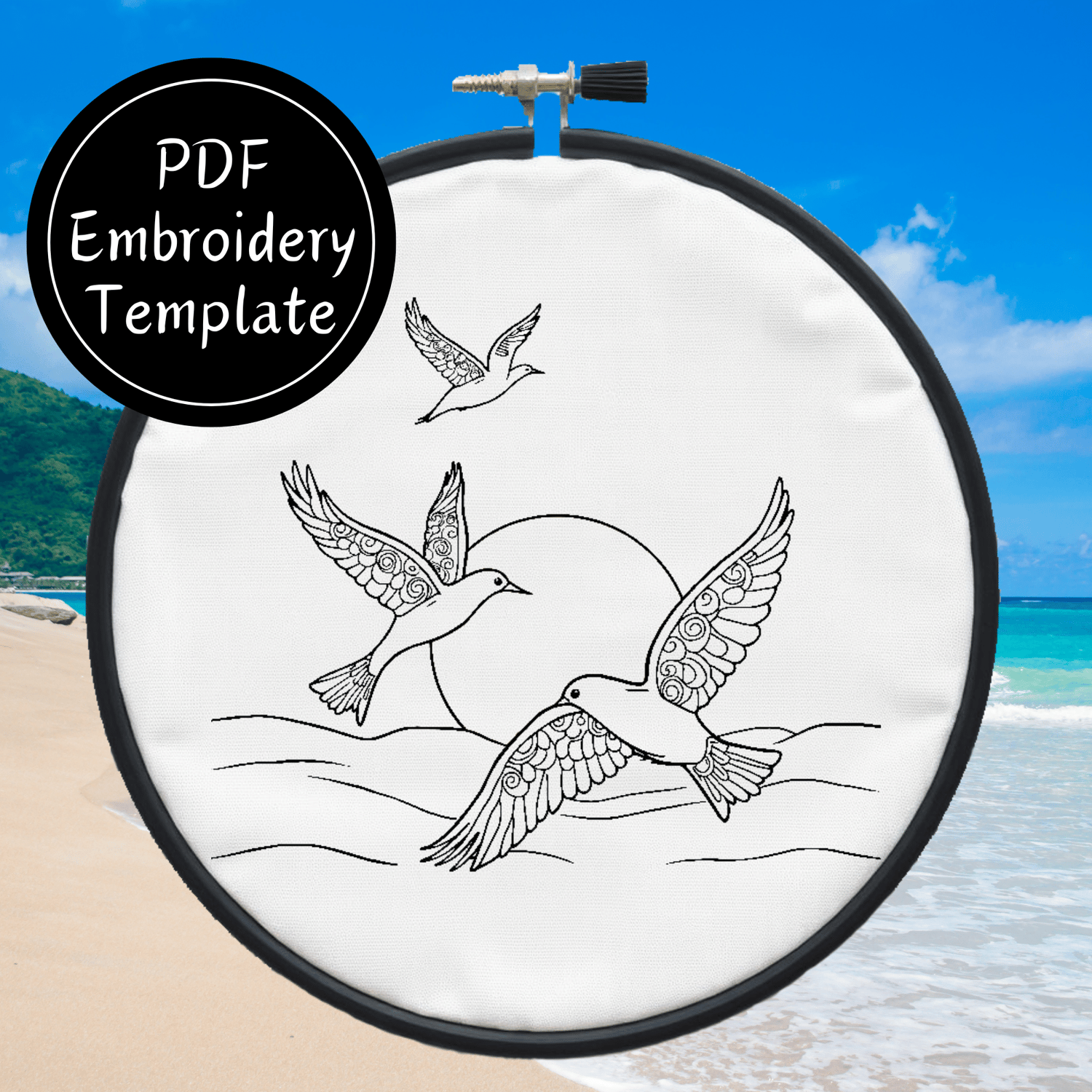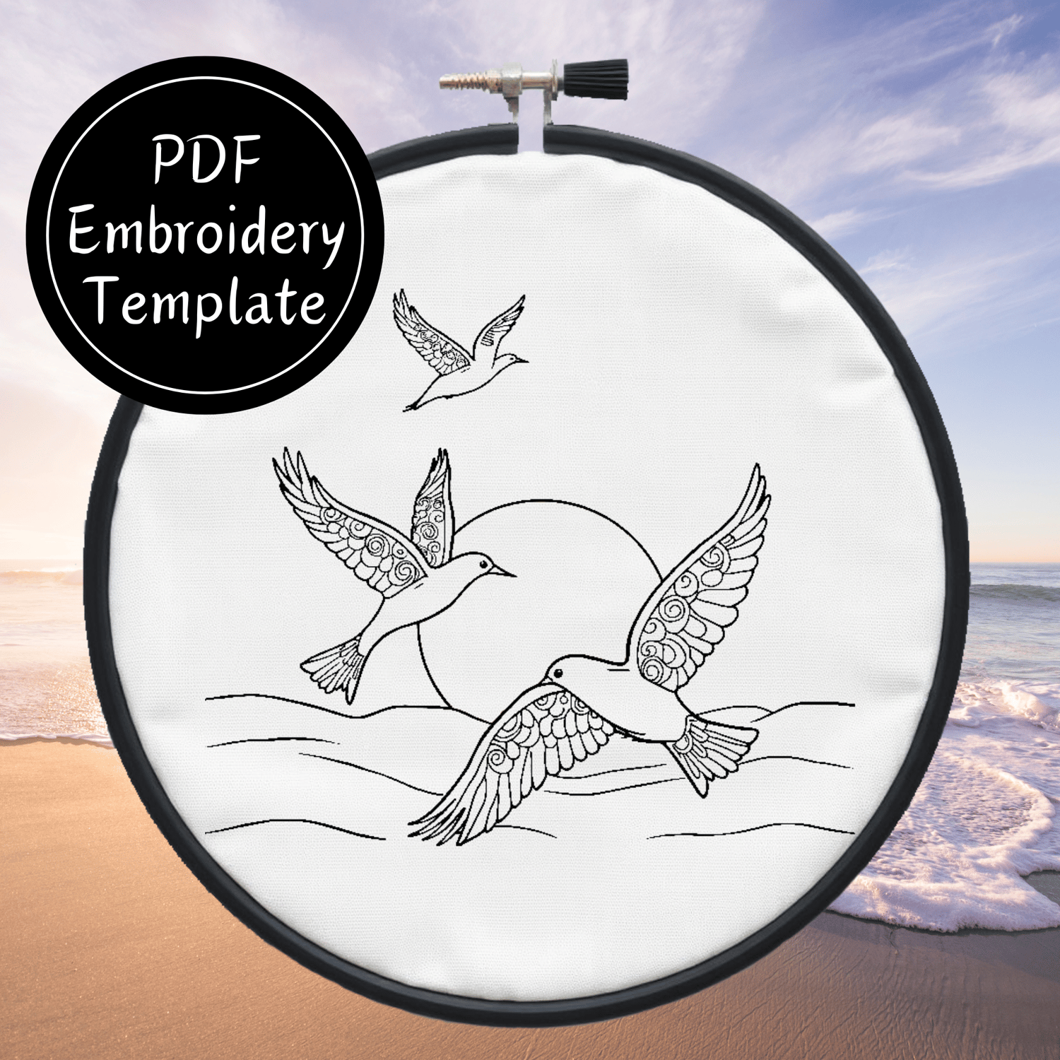 Birds Over Sea Hand Embroidery Pattern DIY Embroidery