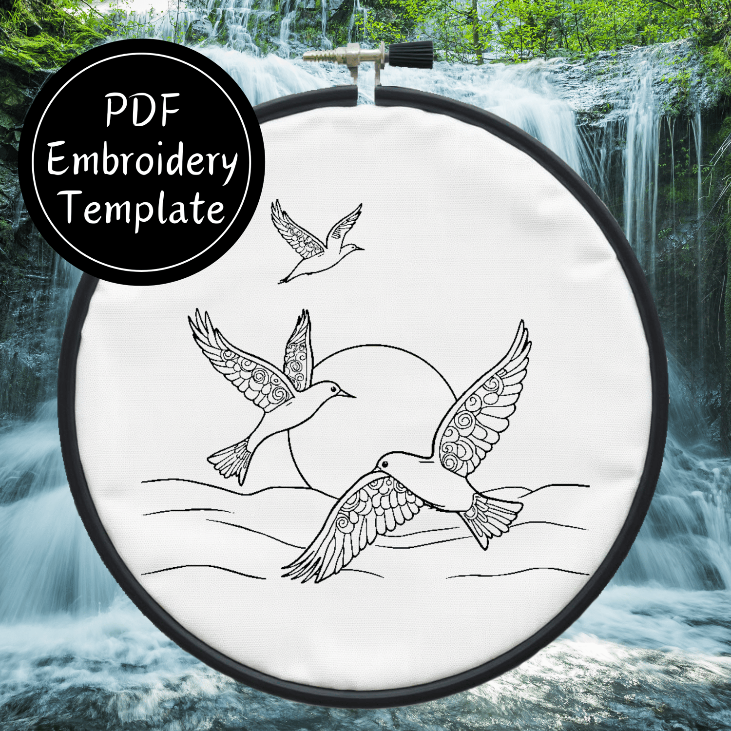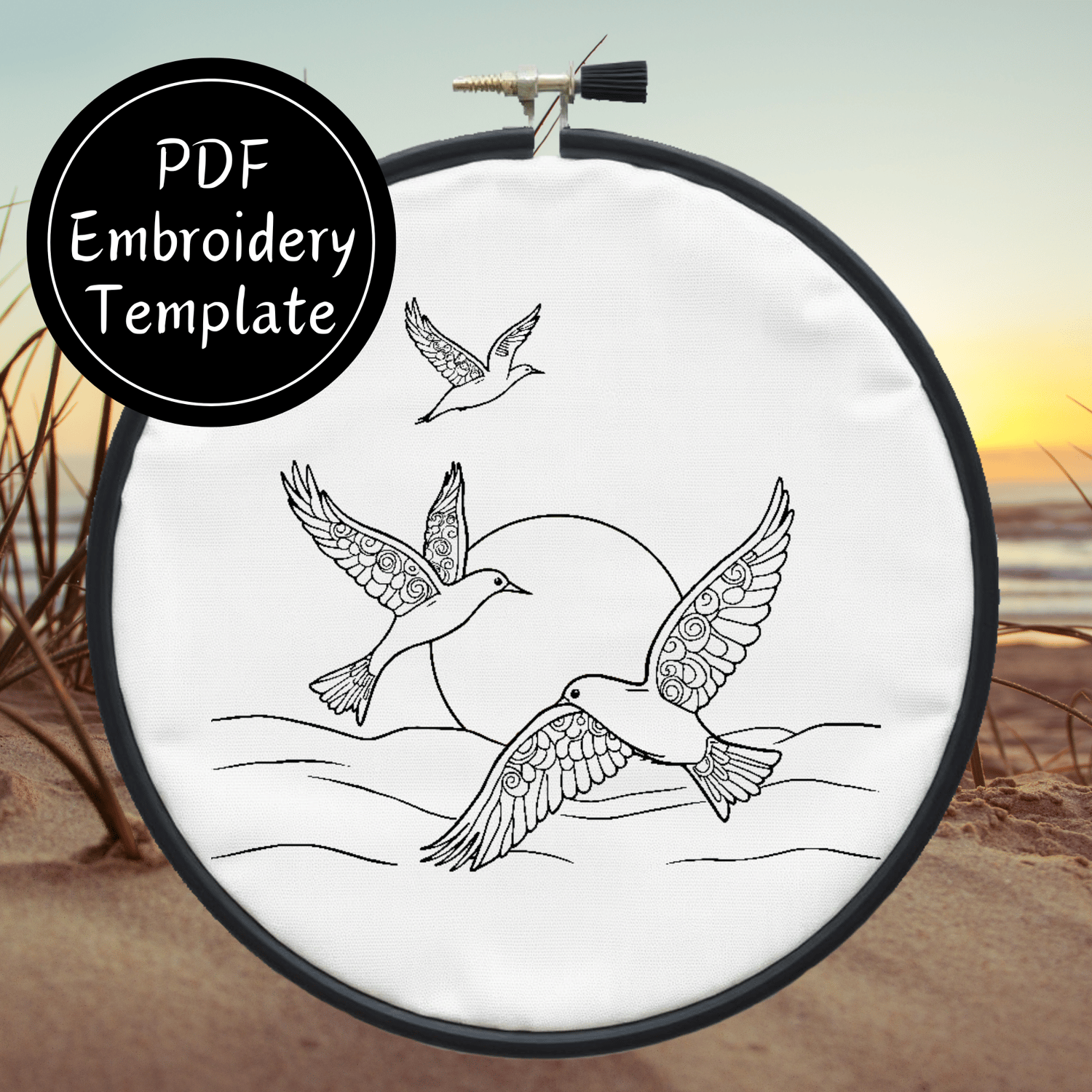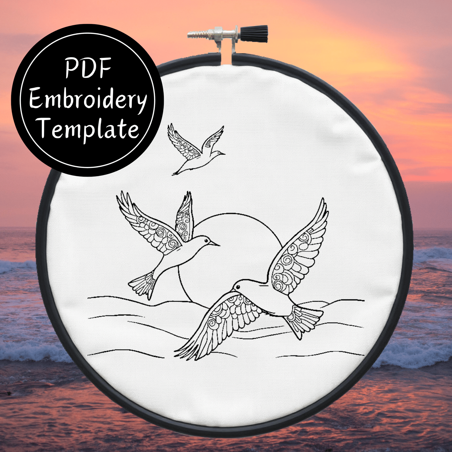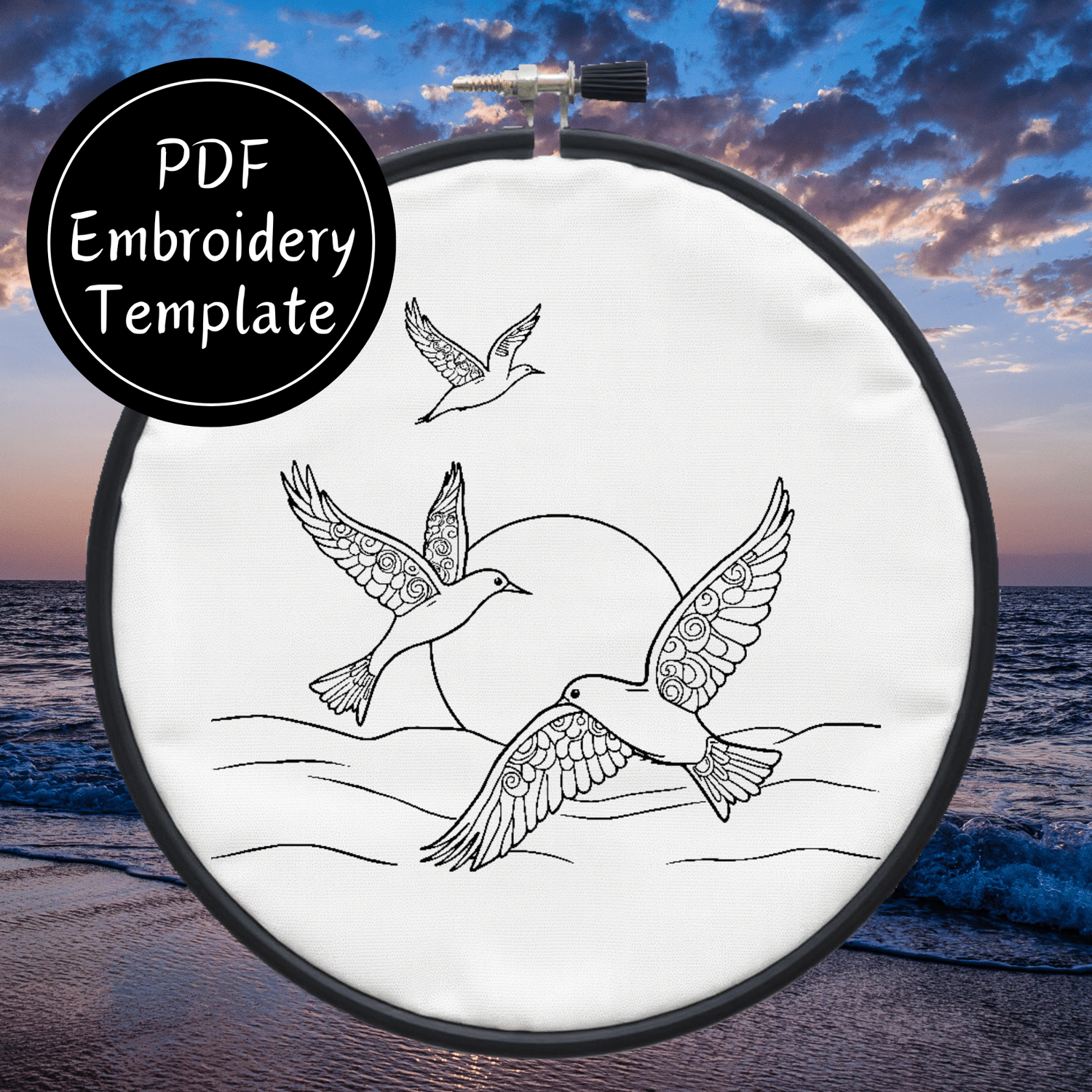 Birds Over Sea Hand Embroidery Pattern DIY Embroidery