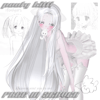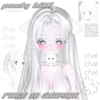 : [ pouty kitti in mouth, 2 paw stickers, kitti ears ] . 2 colors [pink w and w/ saturation] .