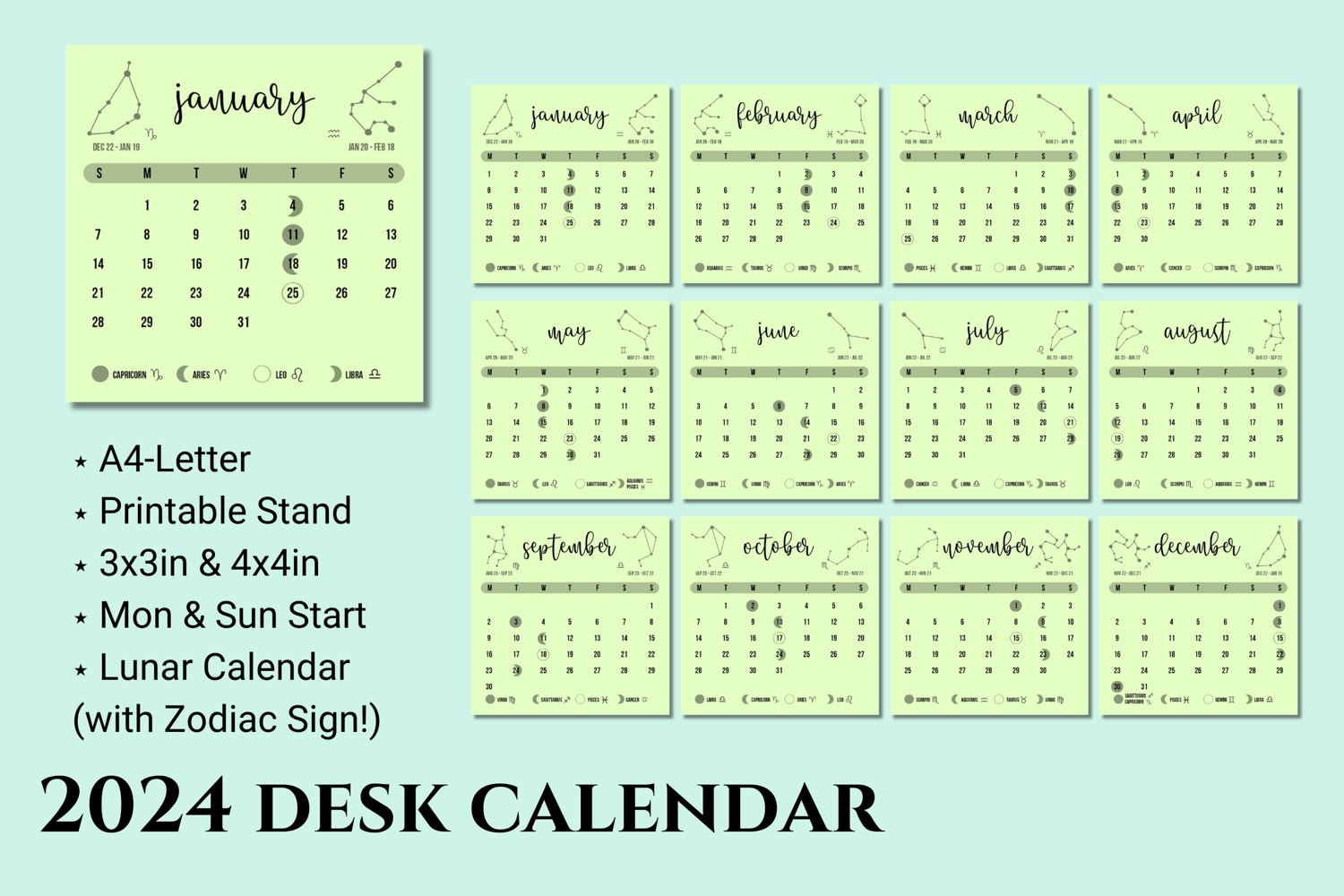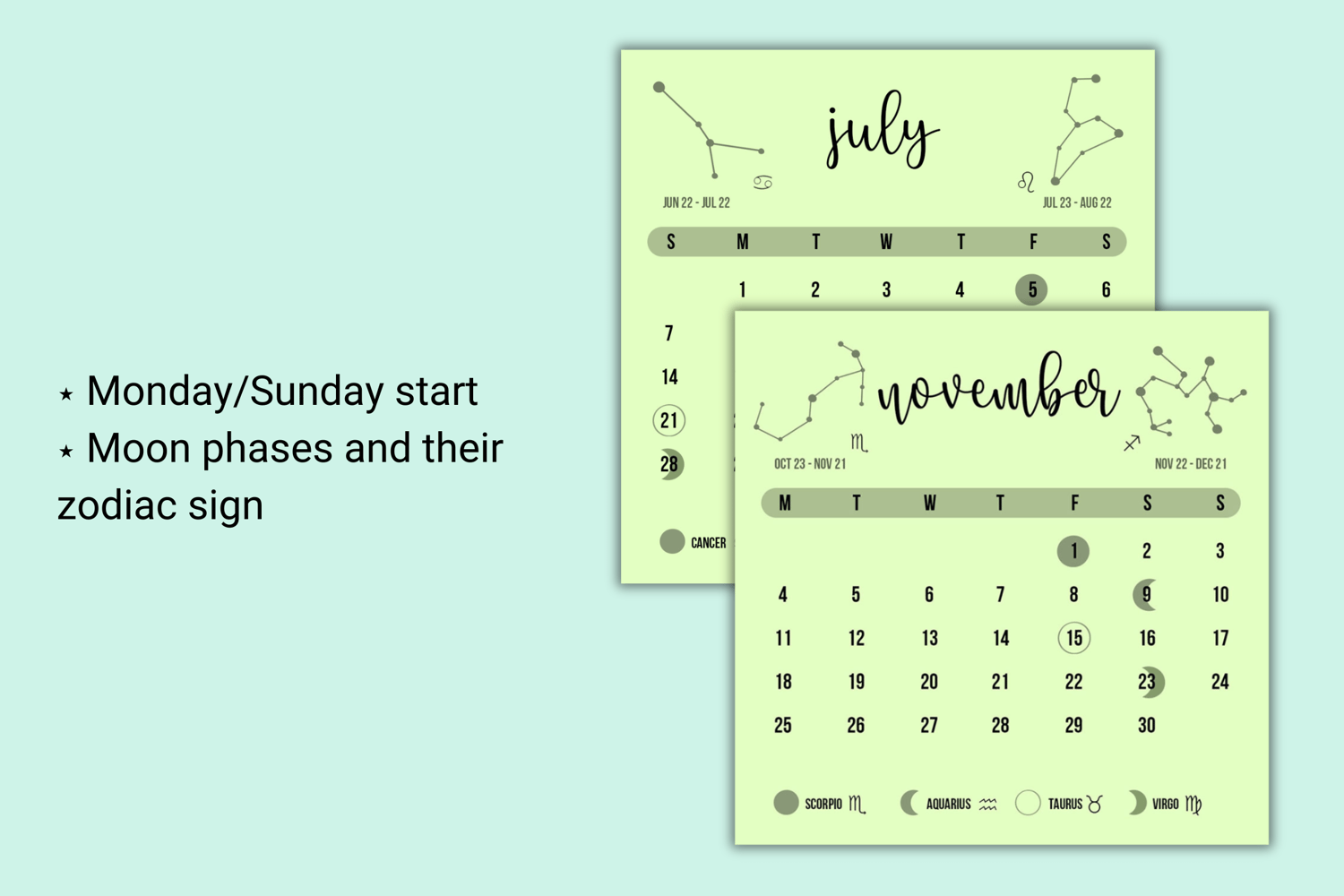 As a bonus, this calendar also has the lunar calendar along with the zodiac sign associated with each phase.