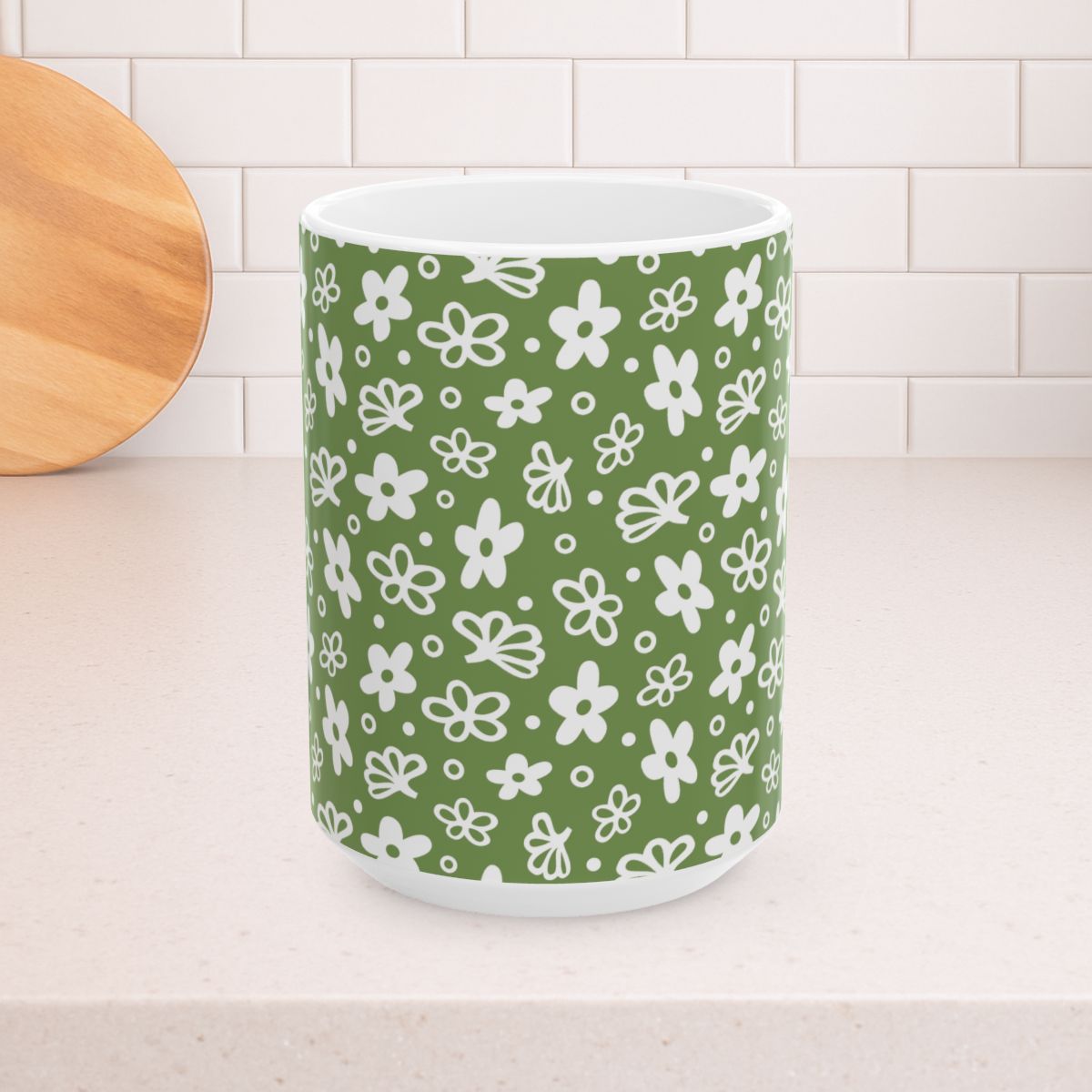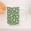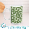 Spring Blossoms 15oz Ceramic Mug, Large Coffee Cup, Vintage Dishes Green