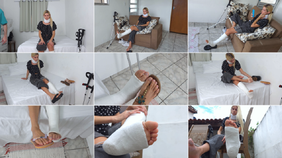 - Anlegen der weichen Halskrause, Fernsehen, Drehen eines Vlogs über die Halskrause, Anprobieren verschiedener Schuhe und Vorführen jedes einzelnen vor der Kamera, Dehnübungen für die Beine und Zeigen des Gipses, der Füße und Zehen aus verschiedenen Blickwinkeln.