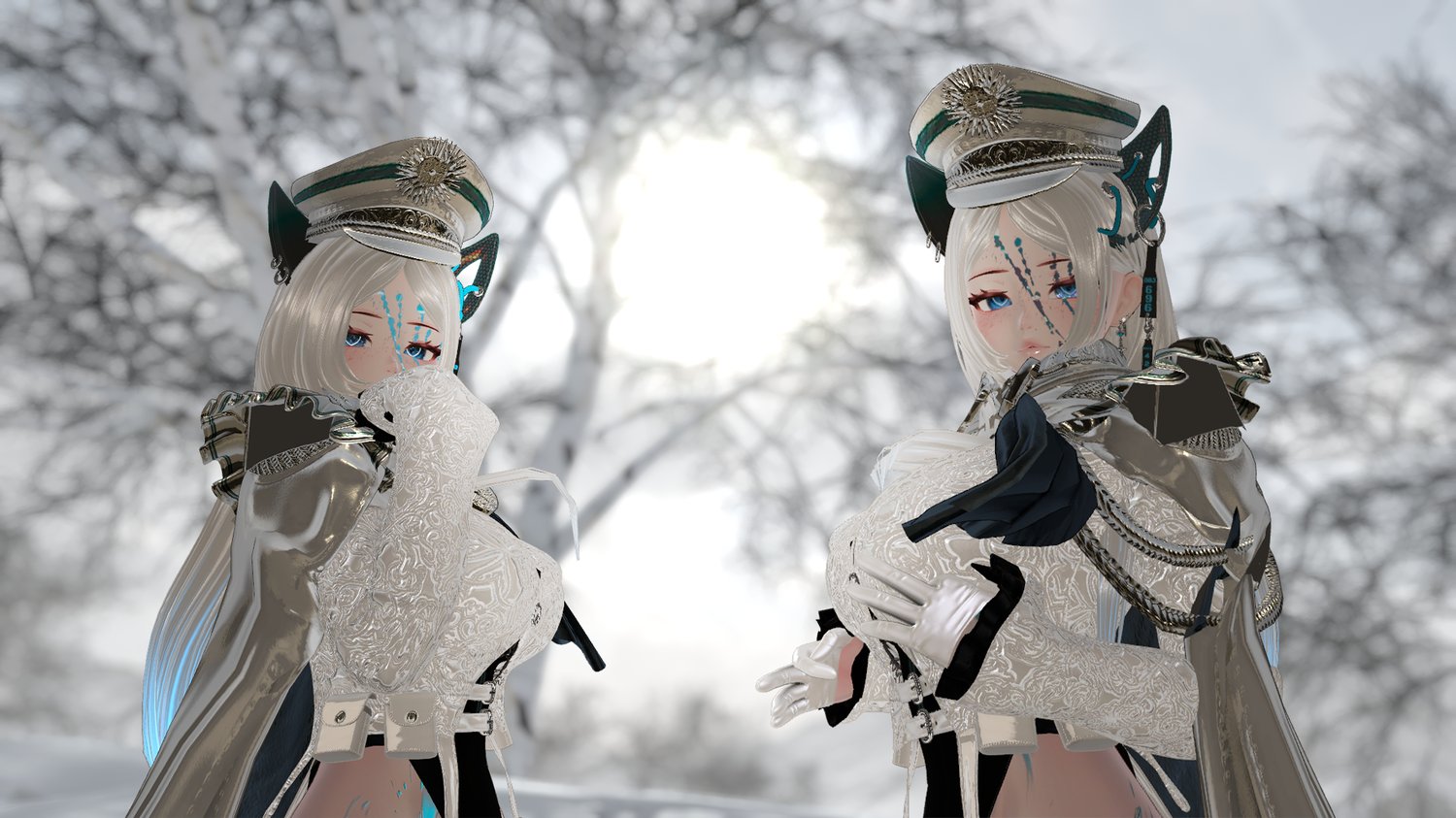 · Accessories: Coat attachment, commander hat, gloves, strap chest and tie by Clingy Store. Harness (gun holster, knife, pockets) by Xero 3D, earrings by Kiktus, nails and rings by ItsYukinaVR's. (Extras with VRFURY; USP Handgun and throwable smoke grenade by POINTLESS).