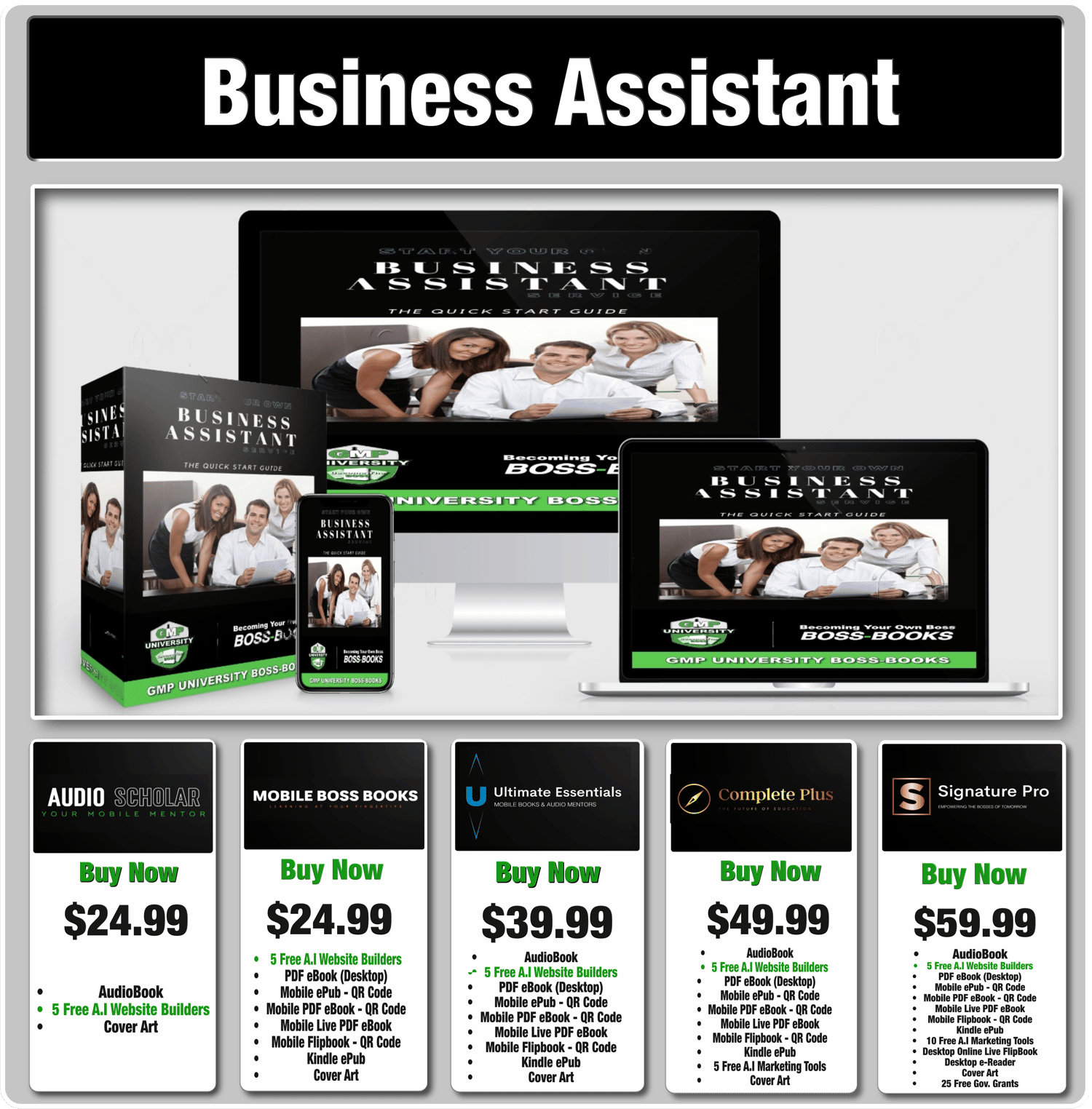 Business Assistant - Signature Pro - With Audiobook / Mobile QR Codes / 10 Free A.I Tools / 25 Grant List / 5 Free A.I Website Builders & More