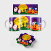 Halloween Mug & Coaster Set (10 Mugs & 10 Coaster)