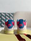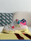 La Air Jordan 4 Retro Union Guava Ice réinvente la silhouette avec un coloris rose pastel et bleu UNC. On retrouve le tag Union apposé sous des Wings translucides ainsi qu’une languette raccourcie pouvant être décousue pour laisser place à la languette OG. Enfin la cage, la sole et la outsole jaunies complètent le design avec un aspect vintage contrastant parfaitement avec les couleurs pour un résultat unique.