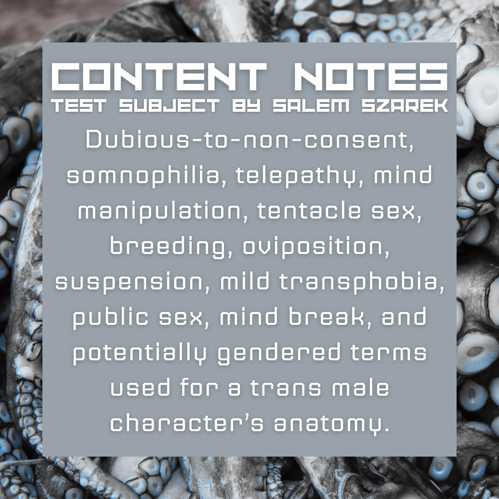 Test Subject is an erotic novella featuring explicit sexual content. It is not meant for those under the age of eighteen.