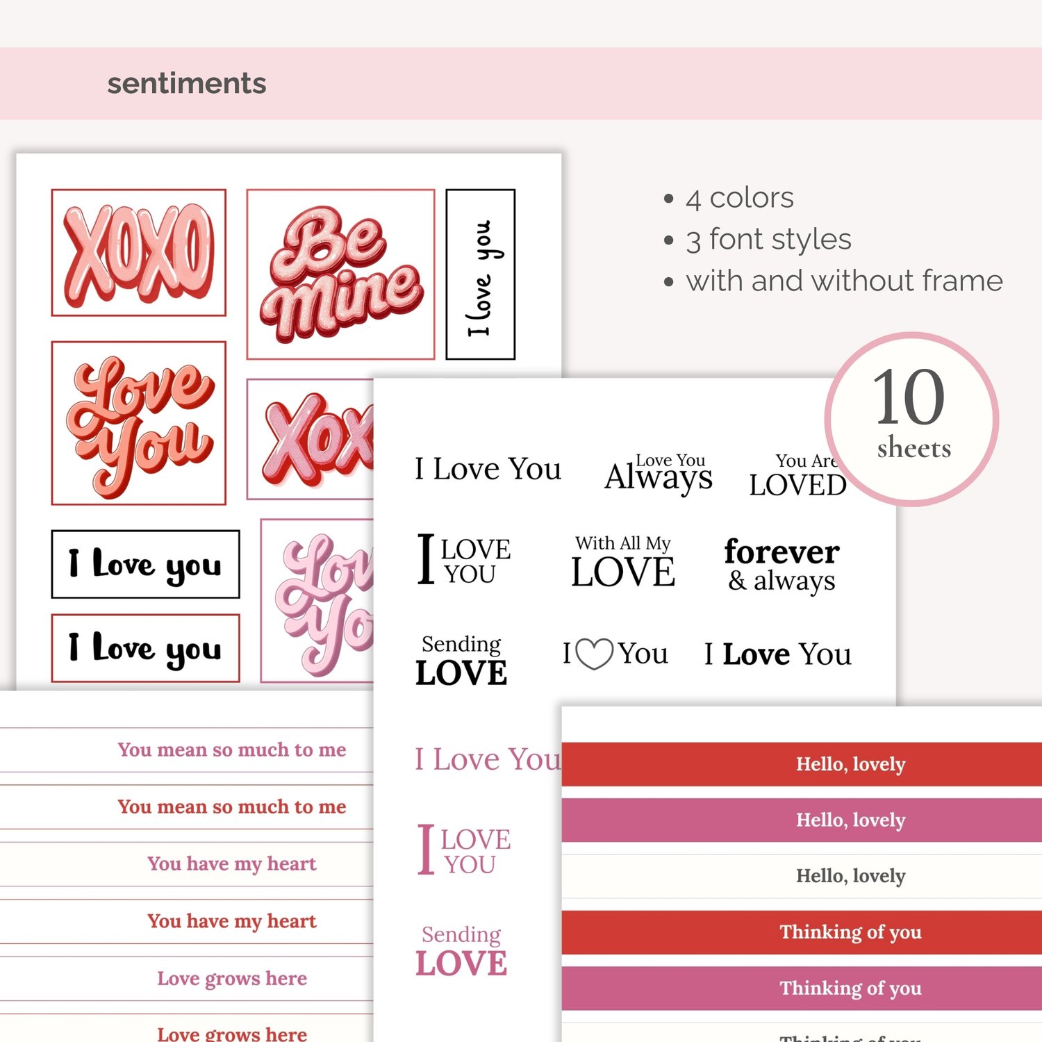 - Sentiment phrases, 10 sheets