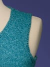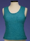 This tank top is worked from the bottom up in pieces, then sewn together, with waist and bust shaping.