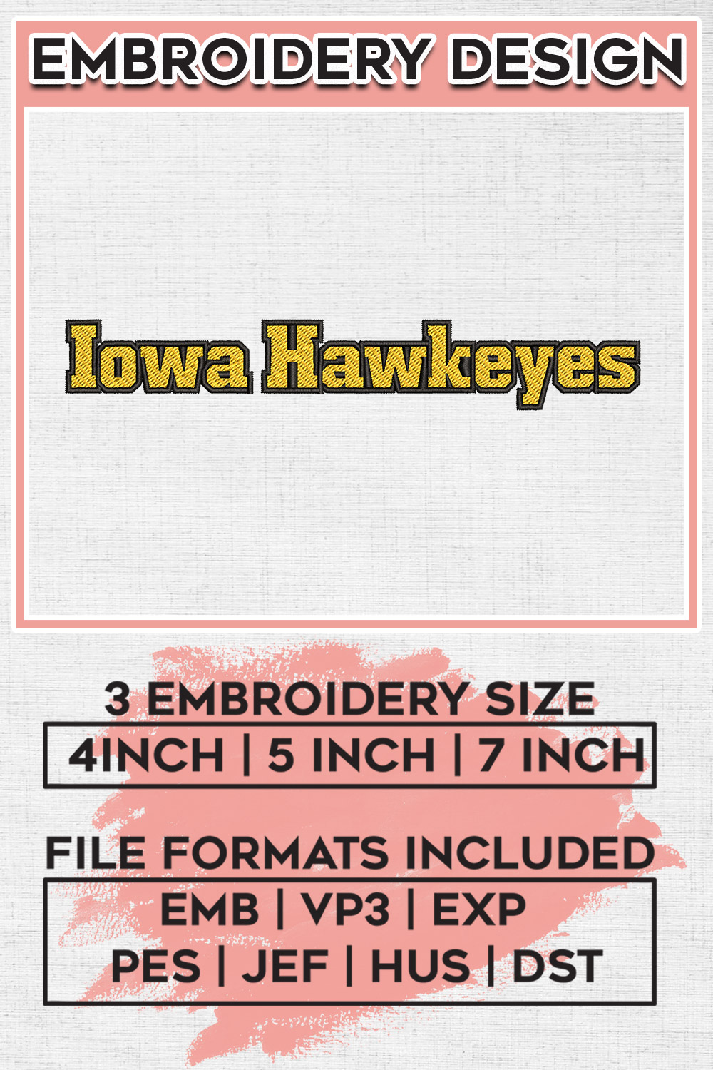 Iowa Hawkeyes Football Team Wordmark Logo Embroidery Files, NCAA Iowa Hawkeyes Team Embroidery, NCAA College Football Teams, Iowa Team Emroidery, 3 sizes, Machine embroidery designs, Digital Down