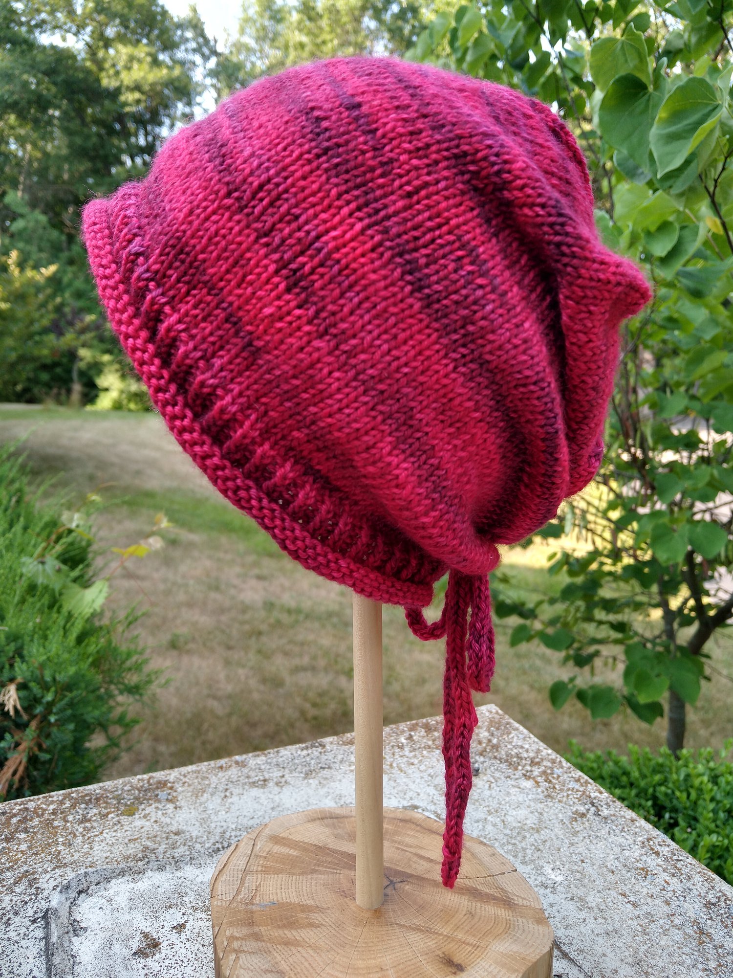 Beauty in simplicity. This little slouchy beanie was designed because I love the look and fit of a good slouchy, but wanted one without the fuss. I don't enjoy picking up stitches for pleats, so this solves that problem! The i-cord cinches the hat perfectly.