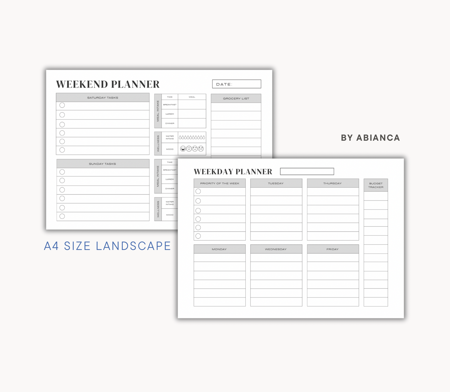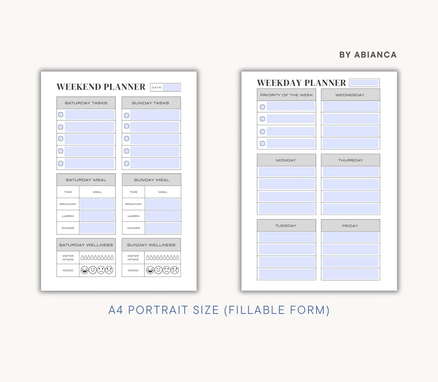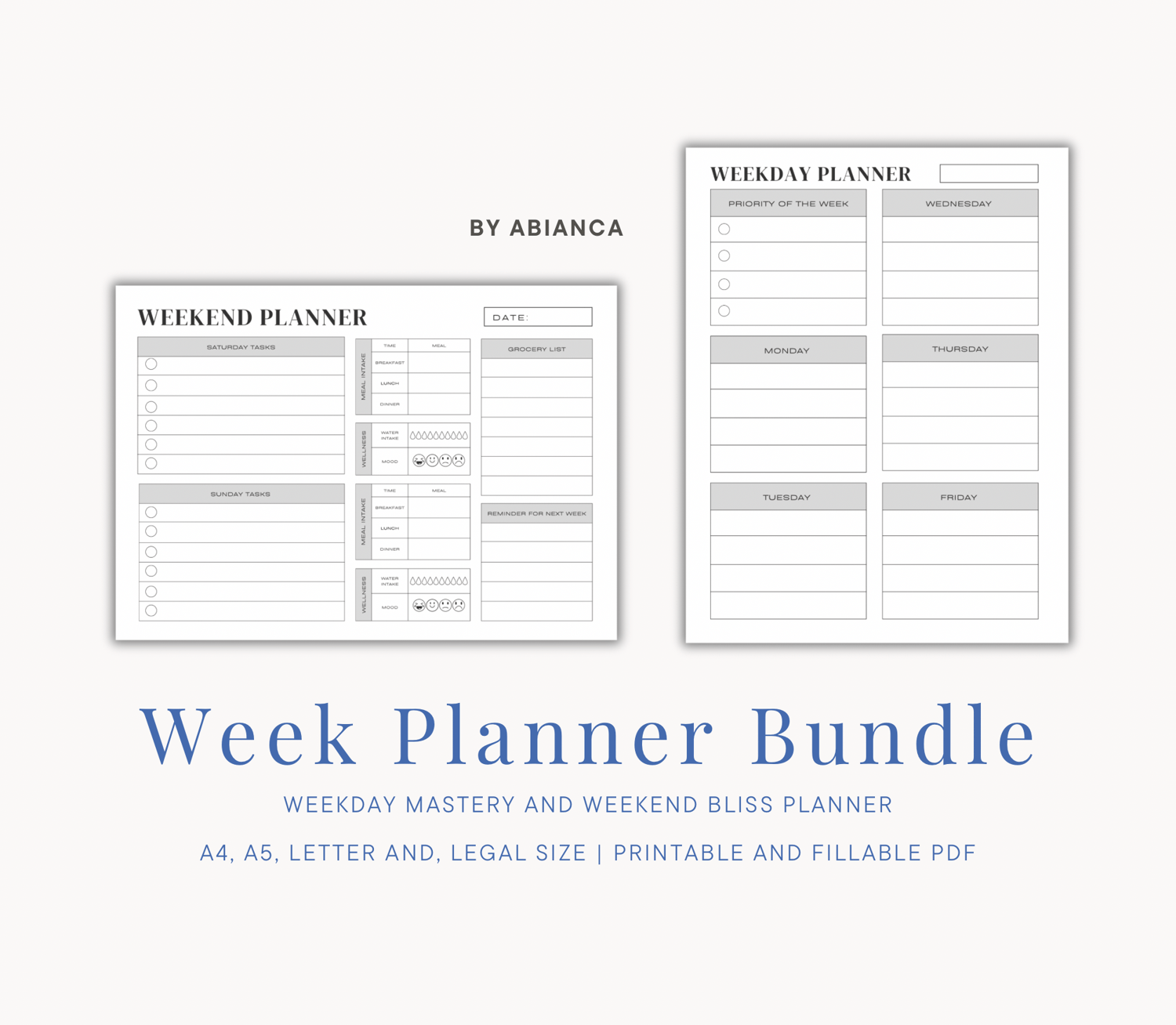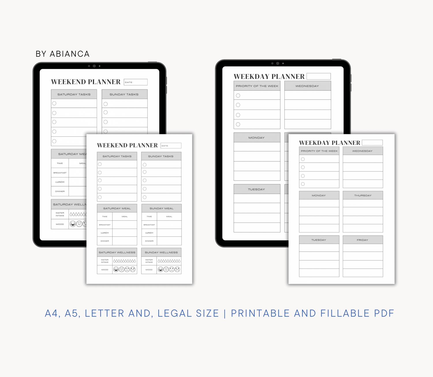 - Weekday and Weekend Planner Portrait (A4, A5, Letter and Legal)