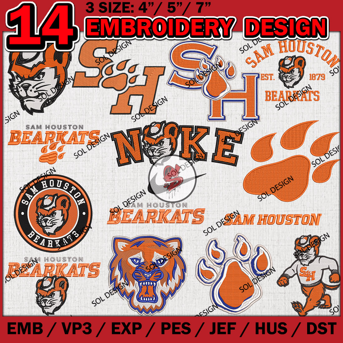 14 Sam Houston Bearkats Bundle Embroidery Files, College Football Embroidery Designs, NCAA Sam Houston Bearkats Machine embroidery Design Bundle, Ncaa Bearkats Logo bundle, Digital Download