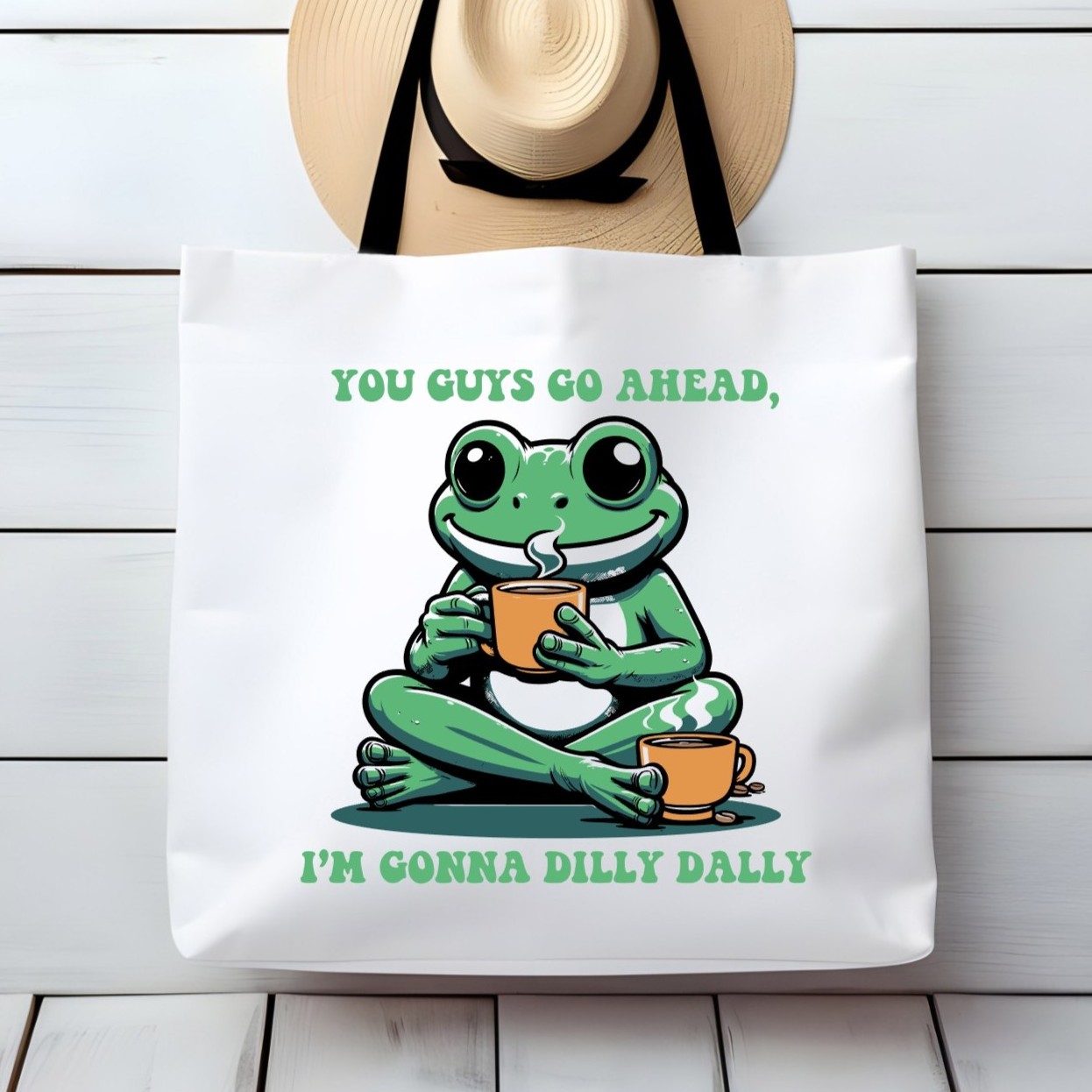 You Guys Go Ahead I'm Gonna Dilly Dally Frog Sarcastic Funny Large Tote Bag