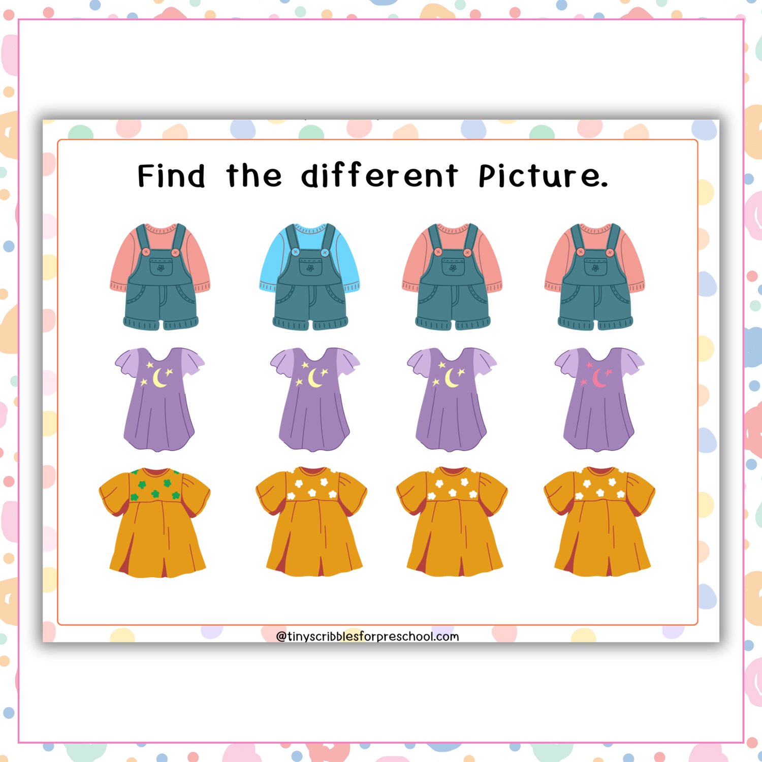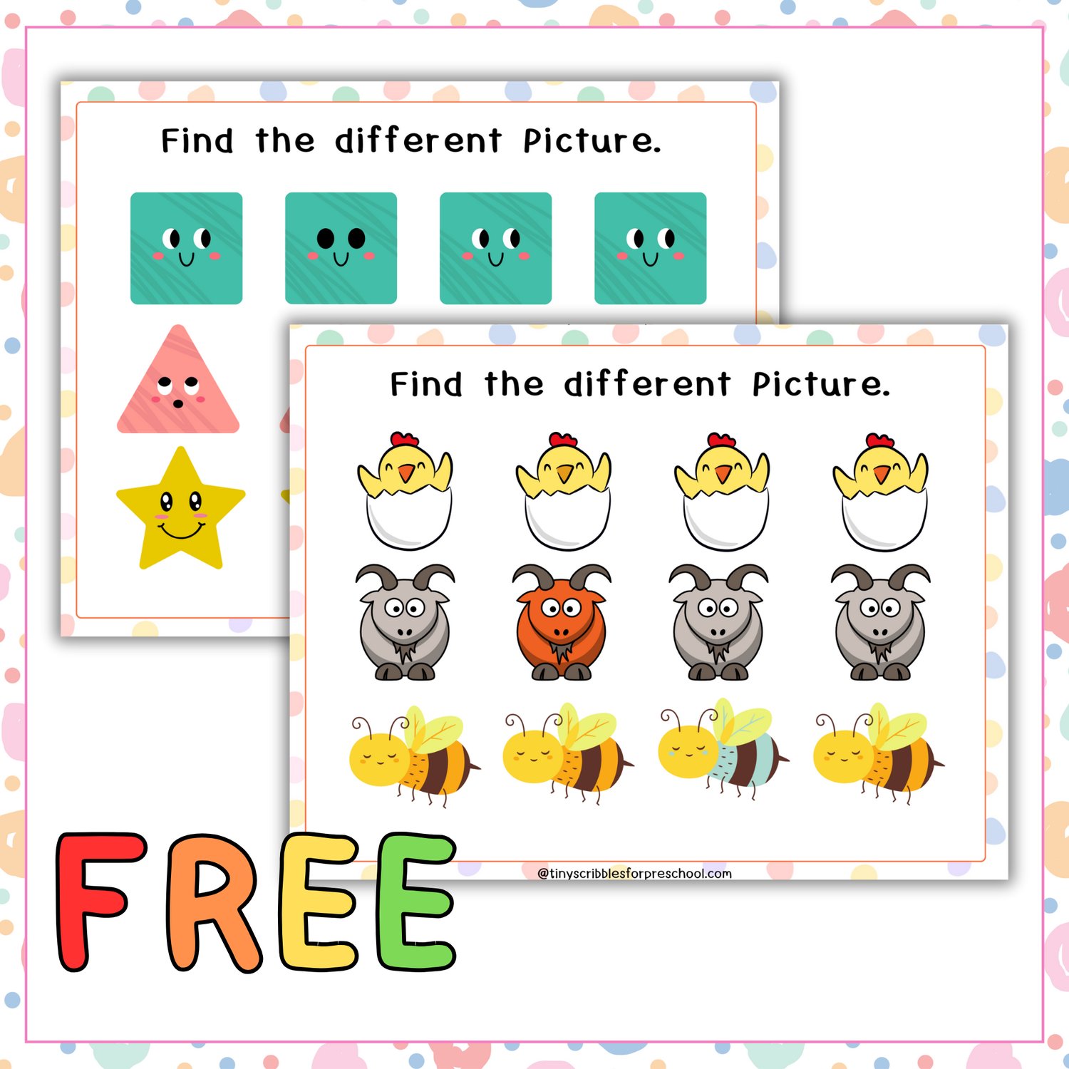 Free Spot the Odd One Out Preschool Visual Discrimination Activity