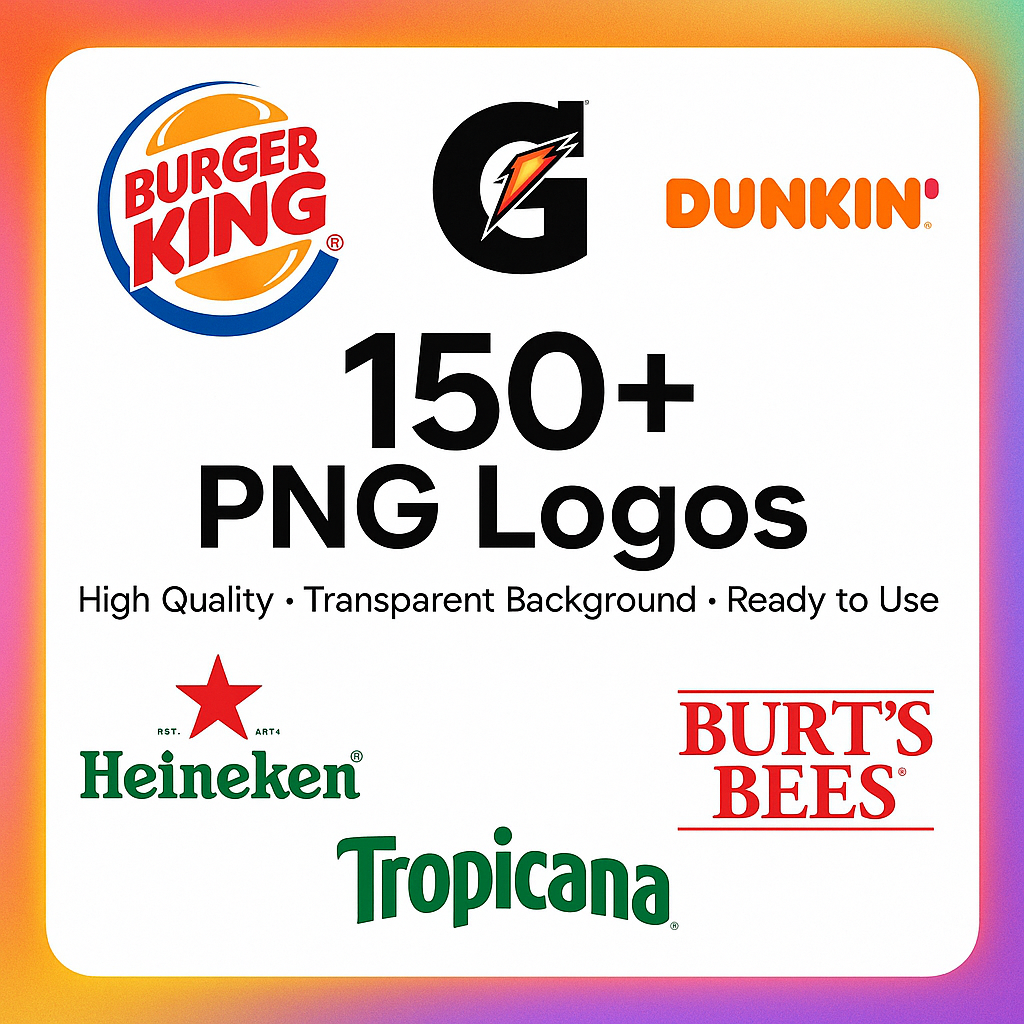 Need crisp, ready-to-use brand logos for your designs, mockups, or projects? This pack has over 150 transparent PNG logos from popular brands — no background, no hassle. Perfect for: