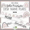 🌈 Neutral Boho Rainbow Desk Name Plates | Editable Student Name Tags